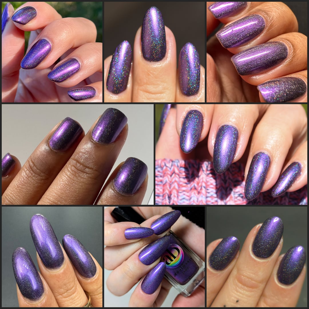 🔮Arcane Amethyst is a black linear holographic polish with a rich purple pearlescent shimmer. When the moon hits the glow of the unearthed raw amethyst, you can feel the energy humming as it calms and protects the forest.