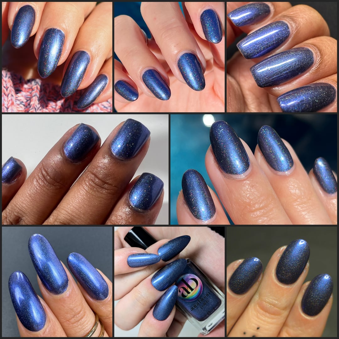 🌌Nightfall Nimbus is a black linear holographic polish with a medium-dark blue pearlescent shimmer. Looking up at the captivating midnight sky, as the storm clouds roll in and eclipse the moon, these clouds will shower down upon the forest canopy soon.