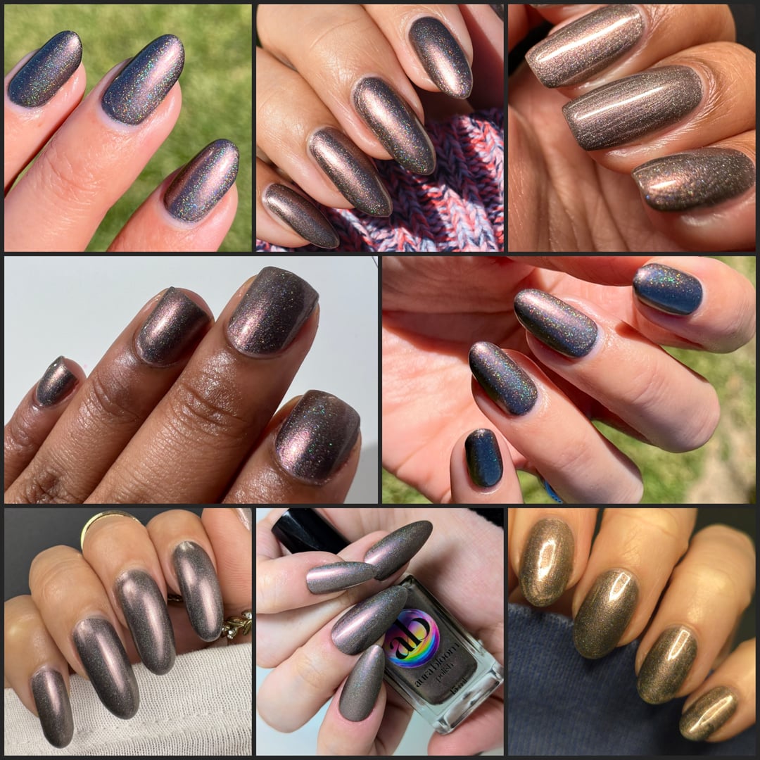 🌳Whispering Woods is a brownish black linear holographic polish with a light woodsy brown pearlescent shimmer. At night the woods are filled with an eery silence, but this silence is not empty, if you listen closely it is whispering to you.