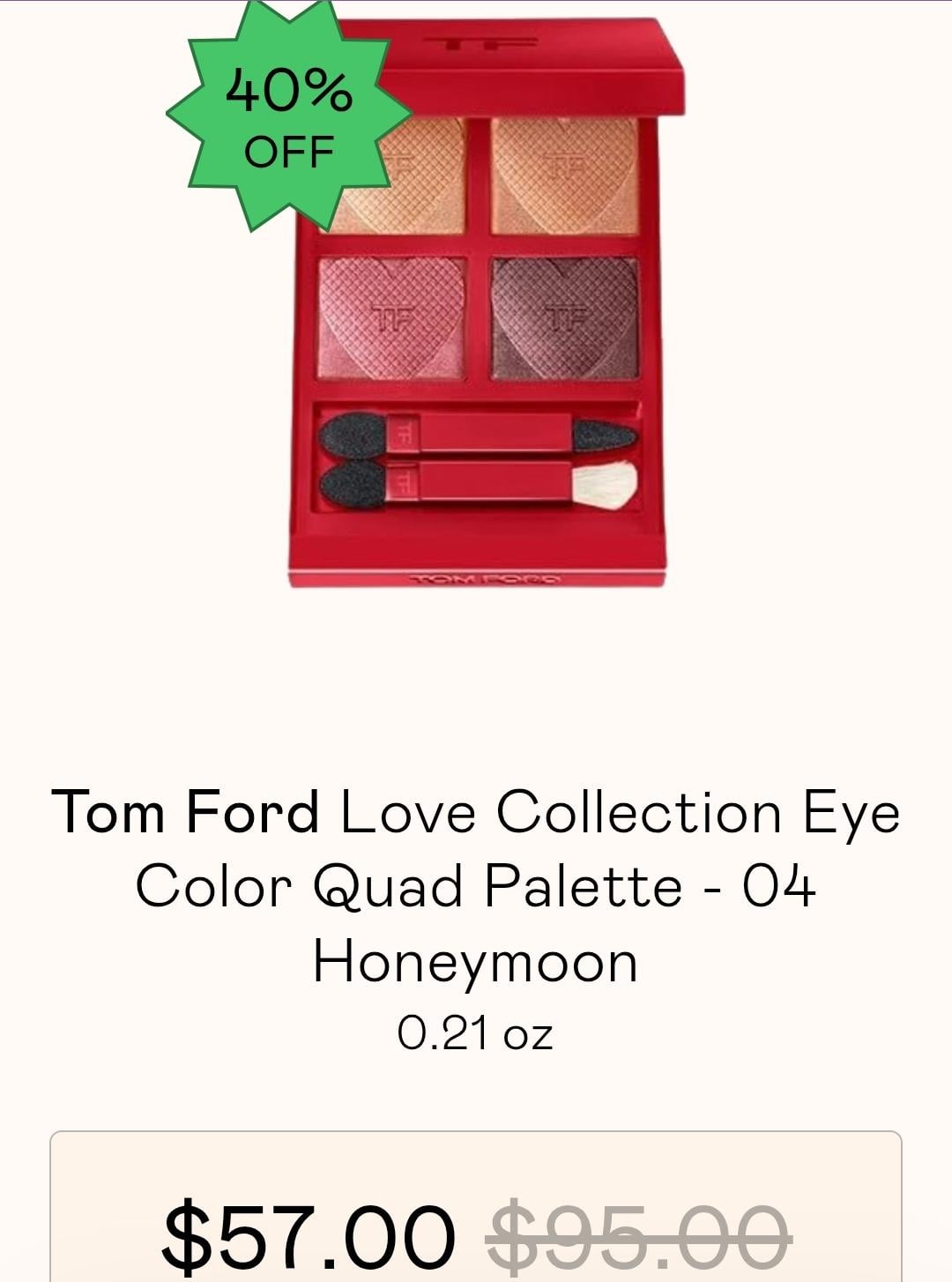 Tom Ford Honeymoon Eyeshadow Quad 40% off, lippie 29% off, Gucci Mat Naturel Powder 53% off at Martie