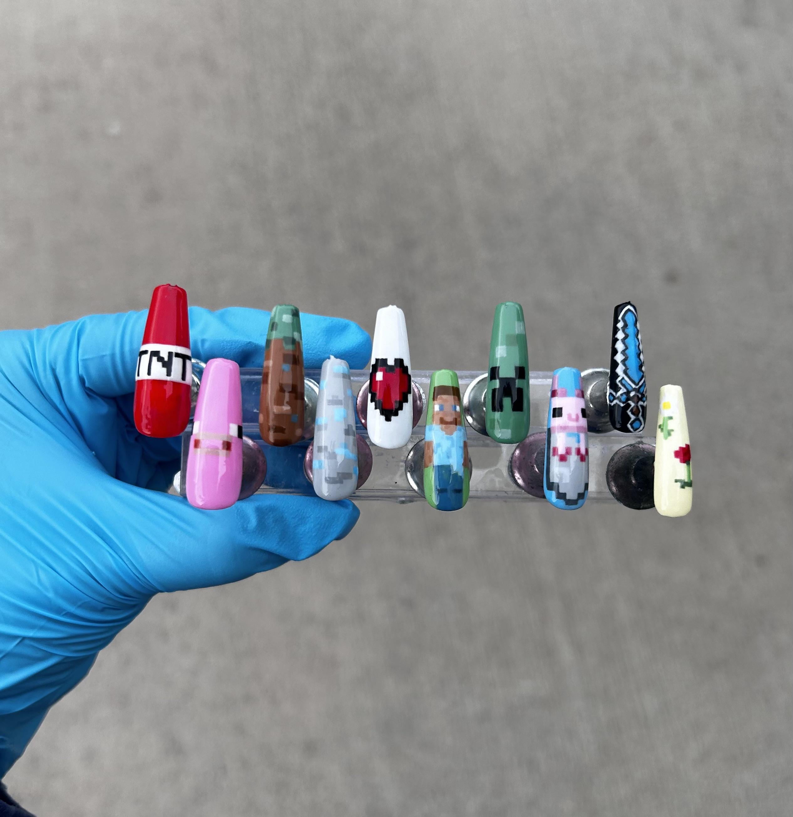 Some MC nails I made for when I went to go watch the movie a while back. These took a week to make but I’m so happy with how they came out. Probably the longest nails I’ve worn I’m still very new to nails 💕 by Timely-Wolverine-592