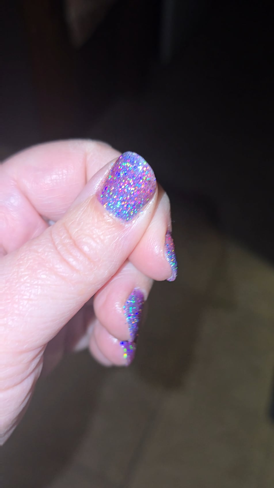 I have always been worried about painting close to other nail colors or mixing them together but I love this! Its so sparkly. Holo Taco long lasting base Halo Taco Glitz & Glam, CTRL Cutie, and Lo-Fi Lavender Seche Vite topcoat by Ashand