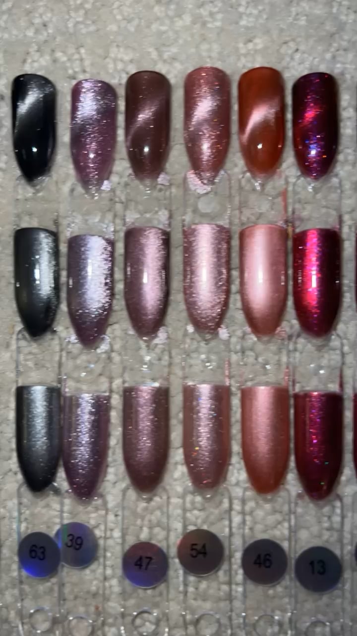 spent about 4 hours swatching out all my magnetics in cat eye, velvet, and unmagnetized form 😮💨 I can’t type everything out here but feel free to ask me about a particular polish no. and i’ll tell you what it is 🙂 by msteacher22