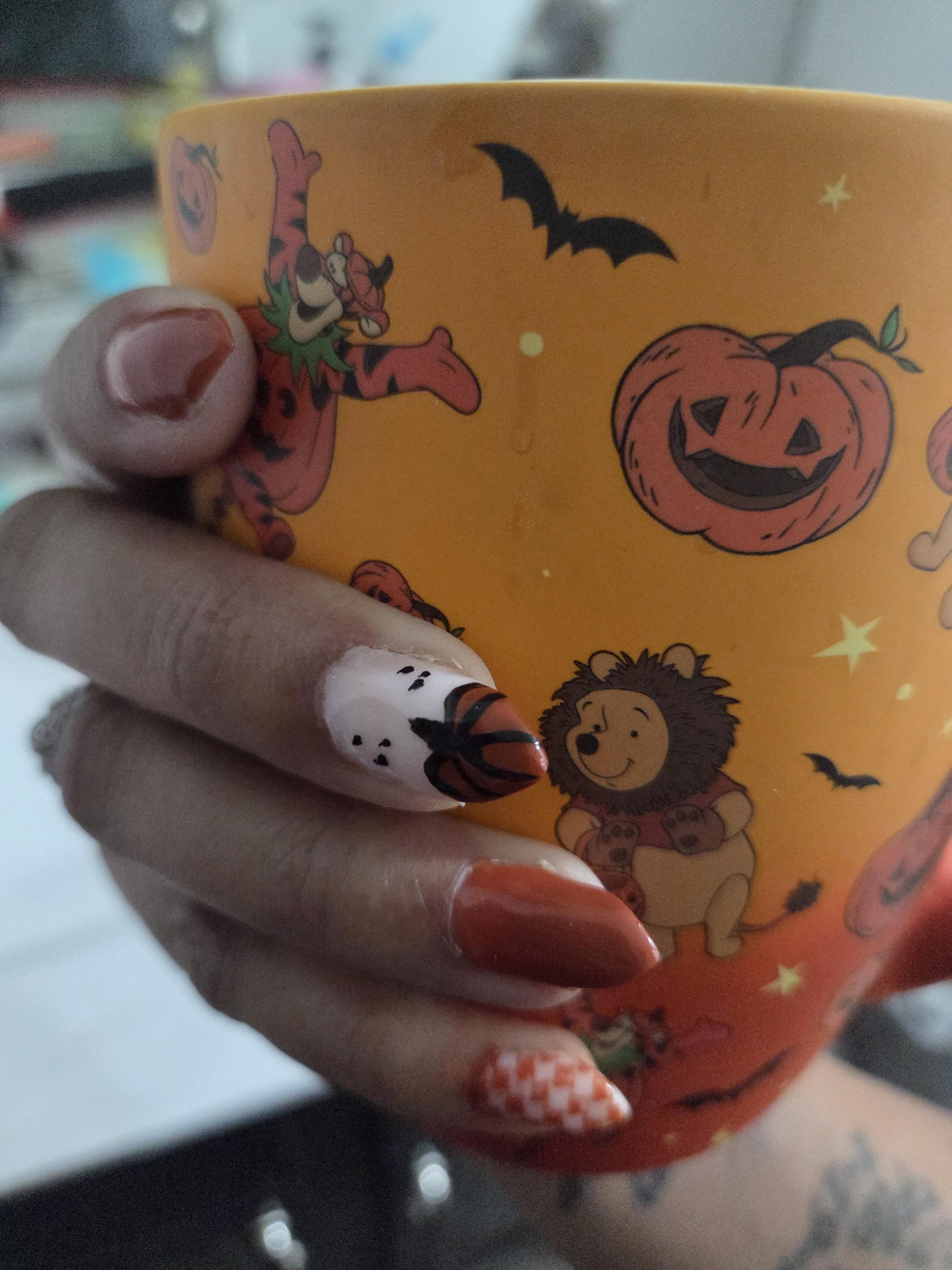 The pumpkin is paint and the checker is a stamp, the rest is dip.