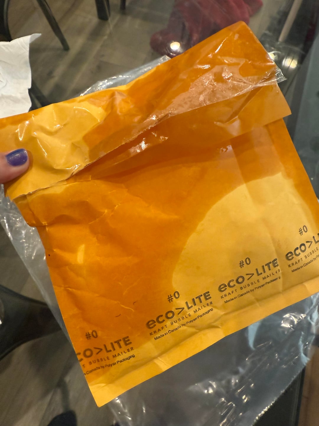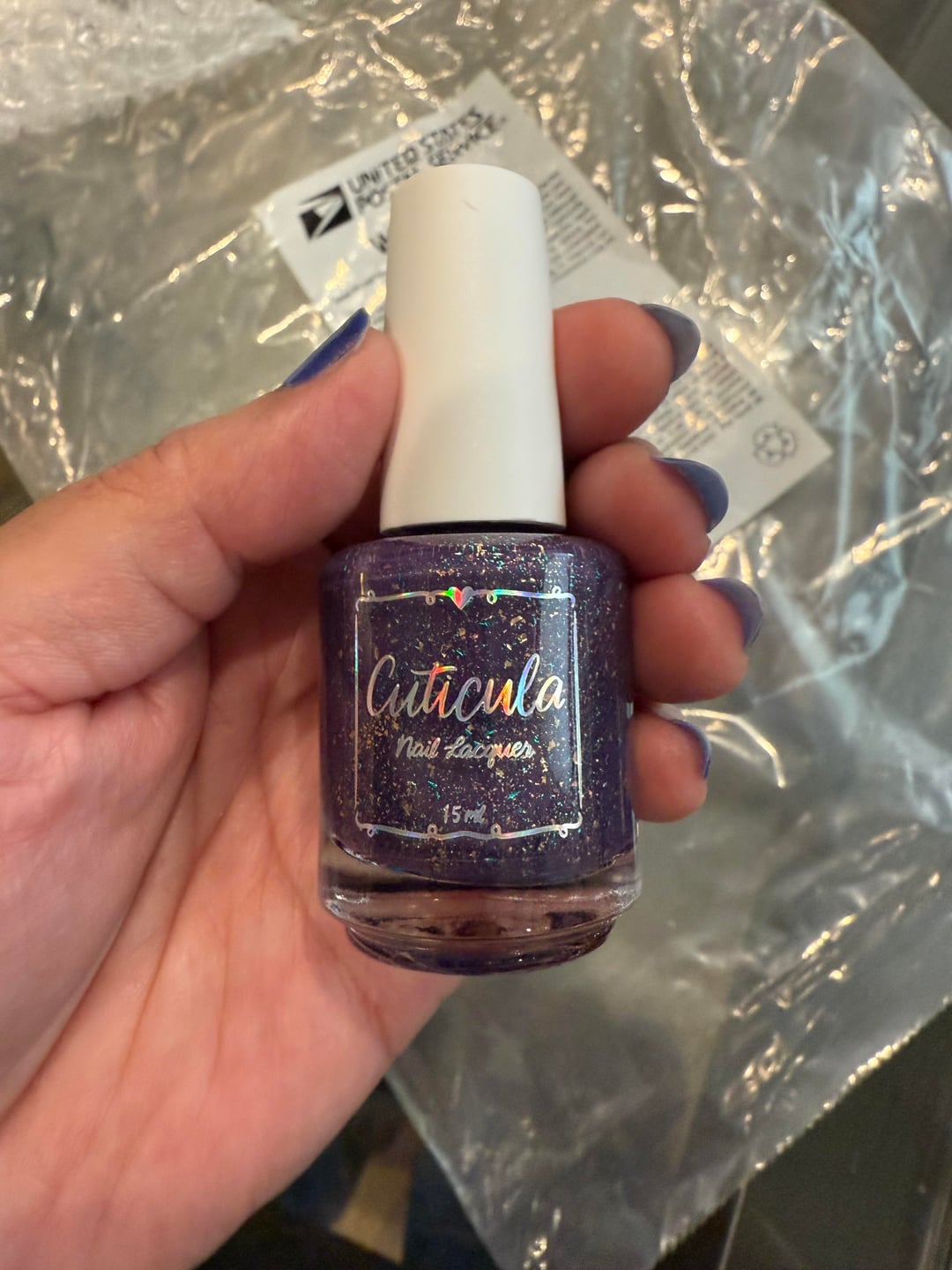 Y’all… my heart fell to my feet when I saw this sitting on my porch. This is my replacement package for Cuticula Trident of Neptune from HHC. Decided to take it out to inspect the damage anyway because why not. Took one whiff and… wait this isn’t a polish smell at all, it’s lavender and feels oily!! Tore open the package and my polish was safe and snug. Whew!! But RIP to whatever lavender product spilled all over my package…