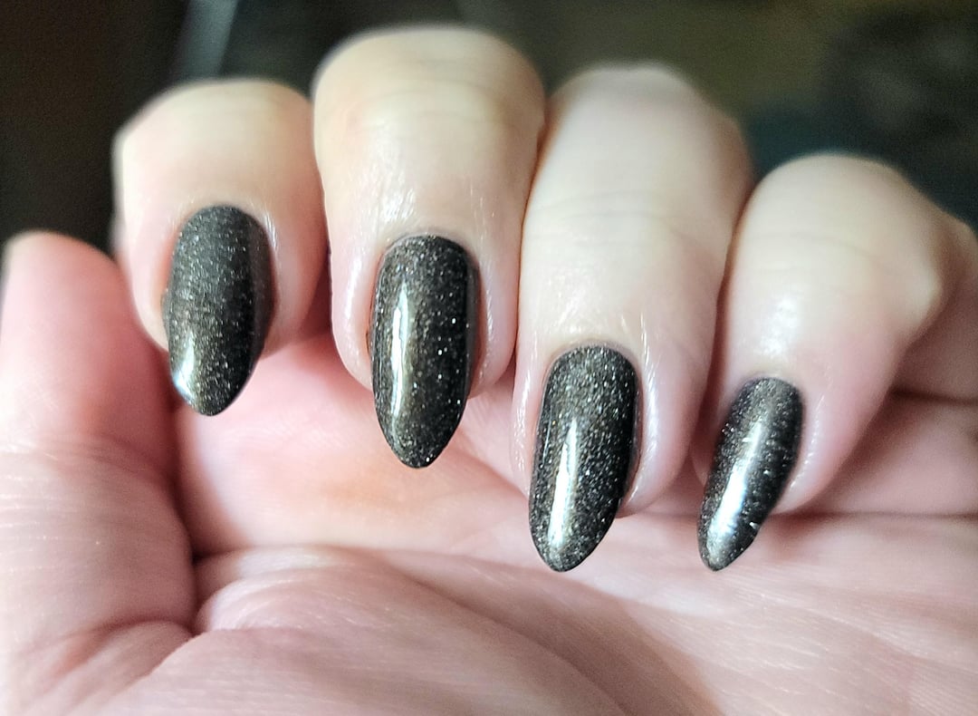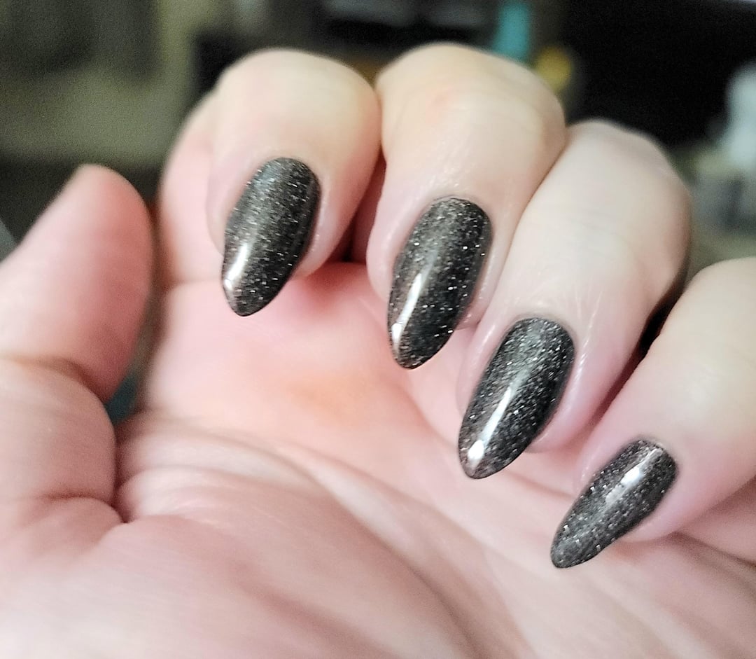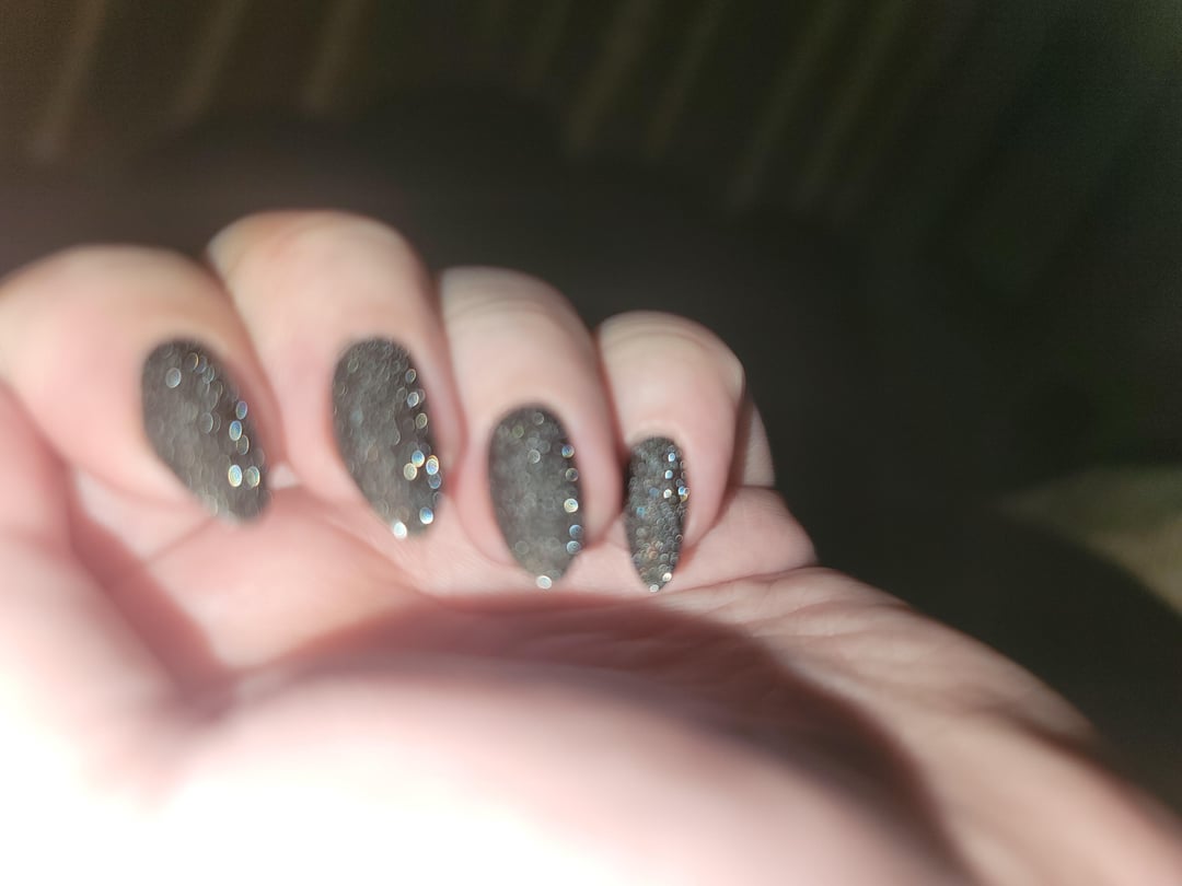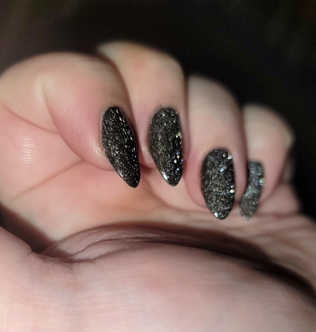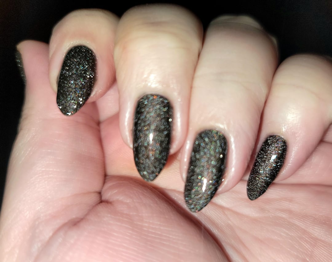 2 coats OPI My Private Jet (p. sure it's the 2018 version); 1 coat Holo Taco Reflective Taco; 2 coats Essie Gel Couture Quick Dry Top Coat by idklikeaburnerorwe