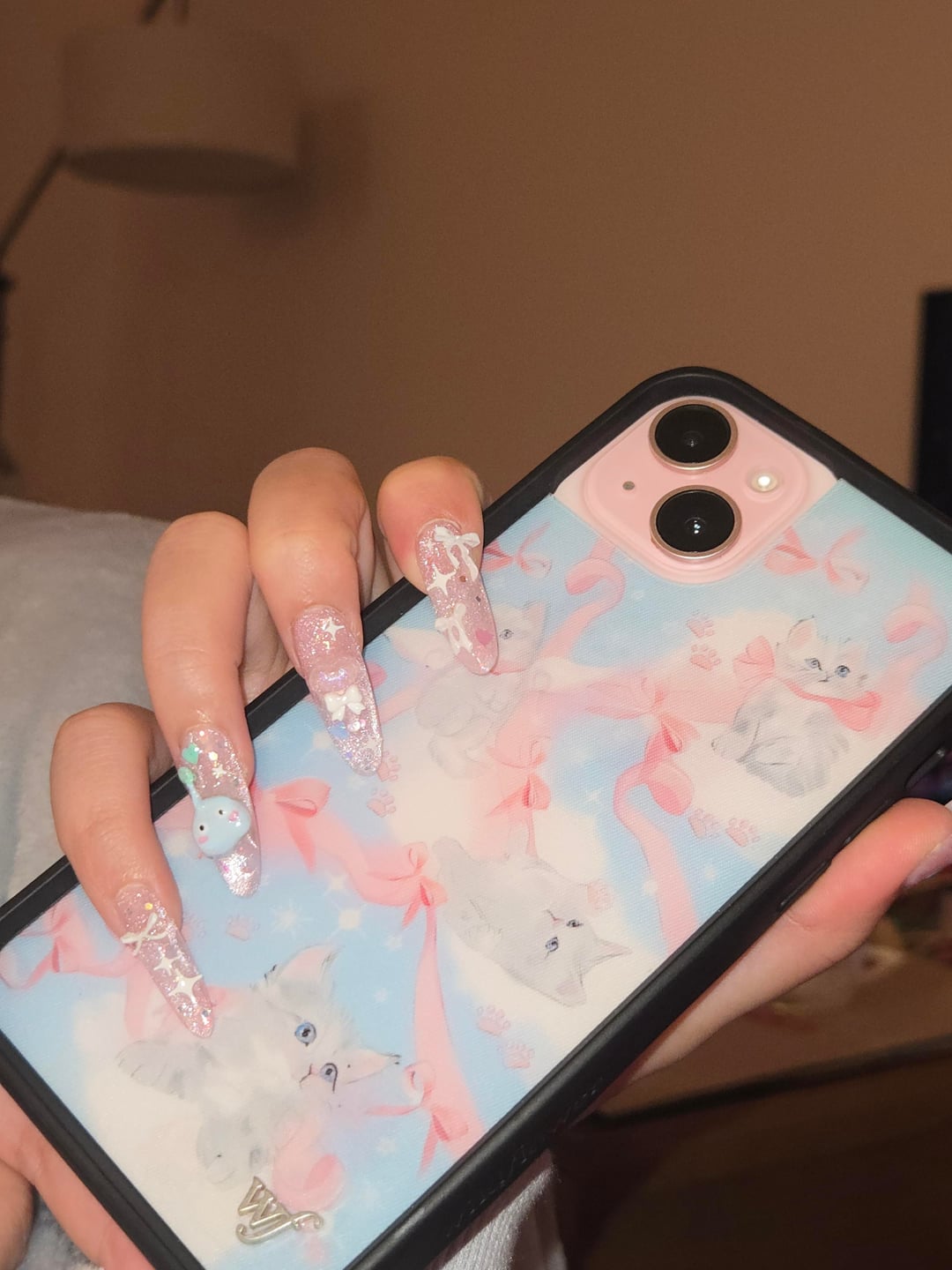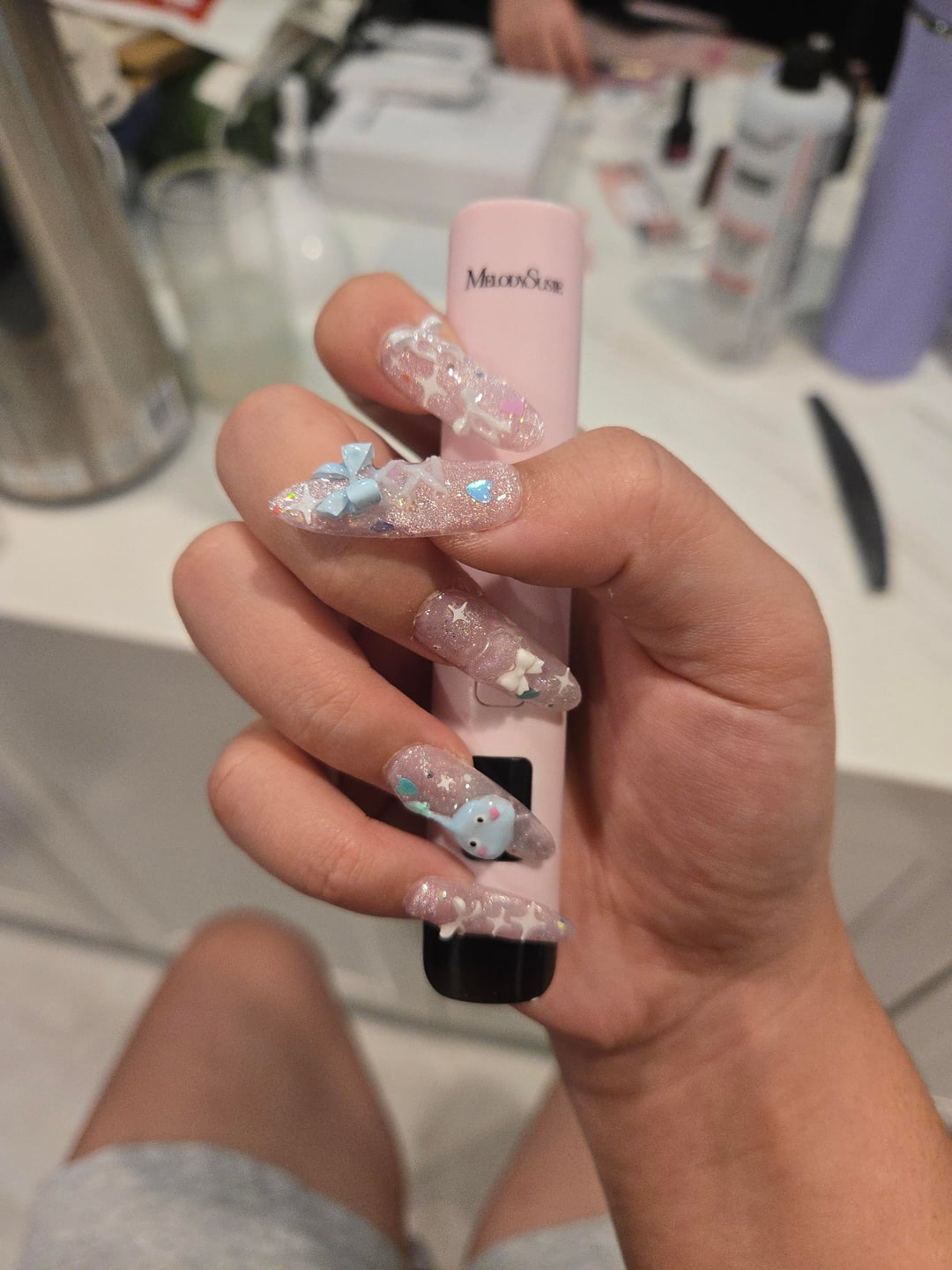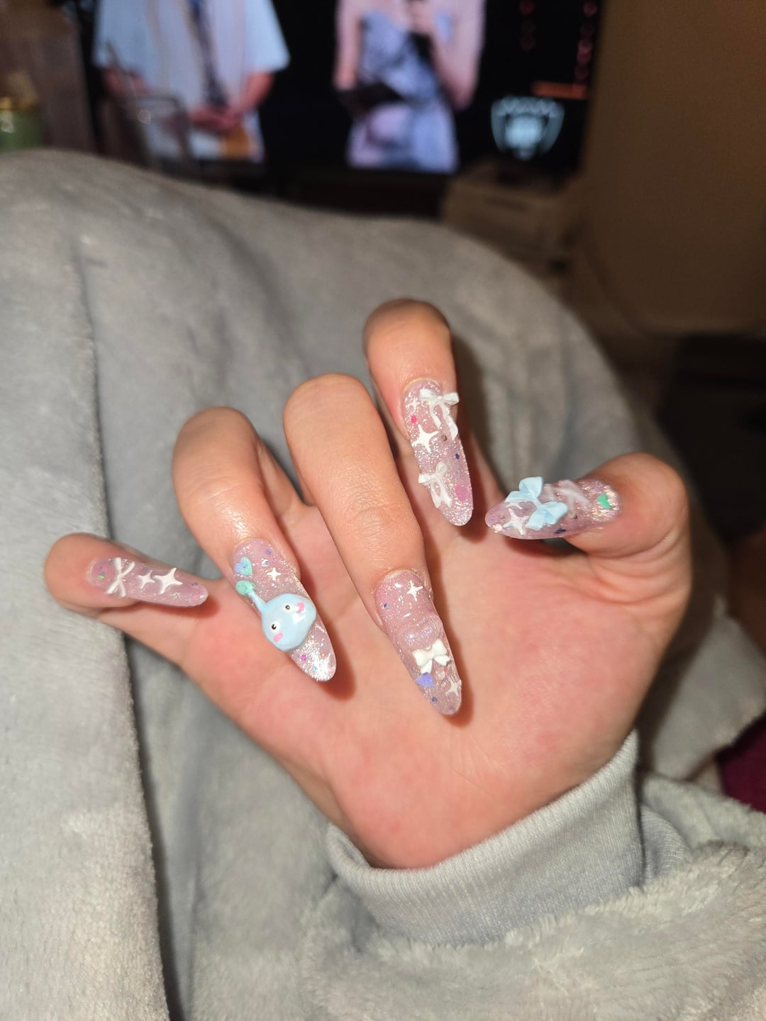 I'm watching League world finals with my siblings and my little sister (17) wanted to practice cateye and some gel sculpting on me. I love them!! Don't ask about my left hand tho LOL (it's still naked). by meitsu