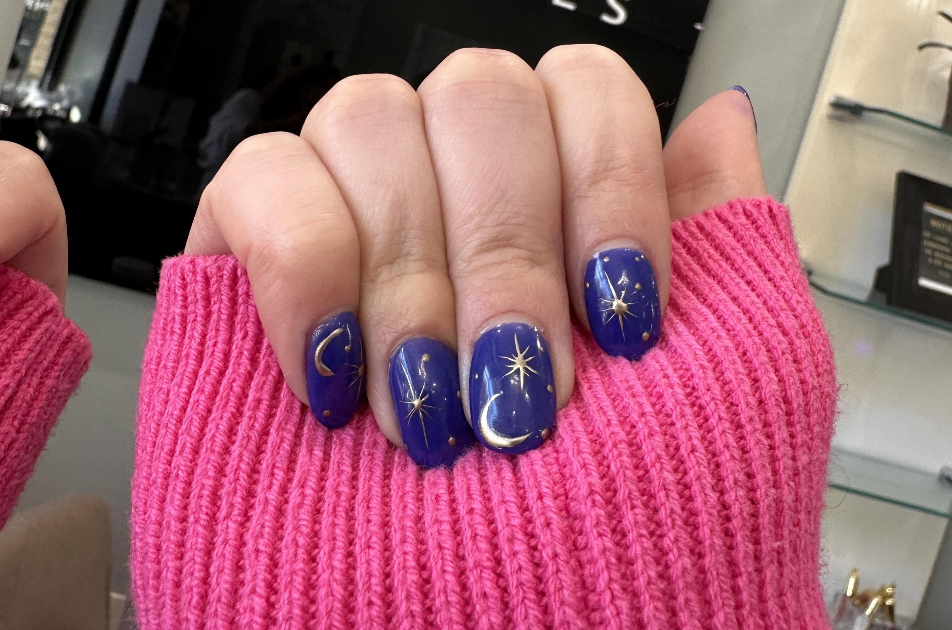 i wanted nails like my childhood bedroom, and my nail tech absolutely crushed it. this is SNS base with gel for the design.