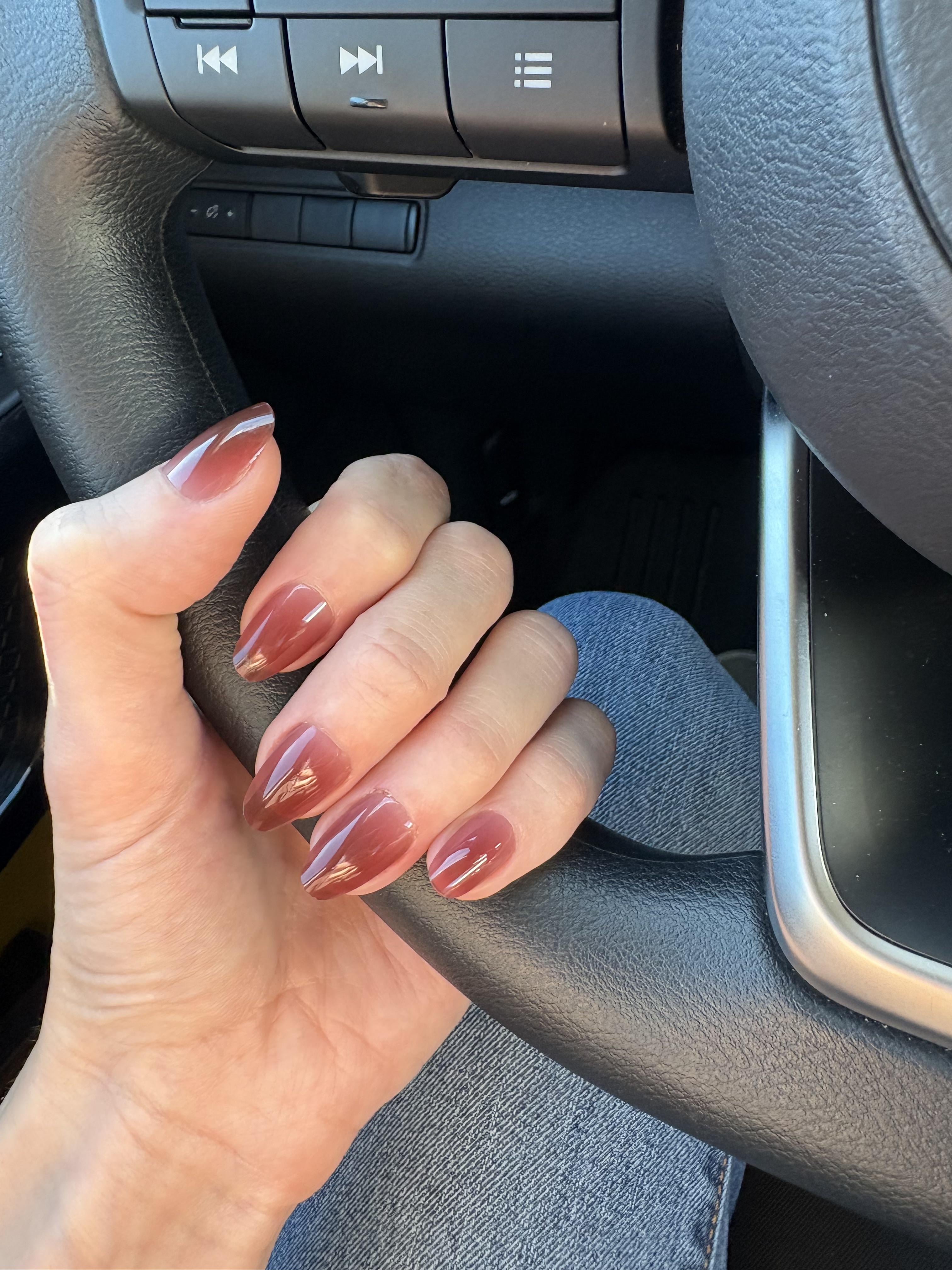 These are the kiss brand bare but better press ons. I nicked the cuticle on my ring finger but otherwise they look great and the fit is perfect for me. I did trim them down a tiny bit, but only because they’re see through and seeing the size number from the top side was bothering me.