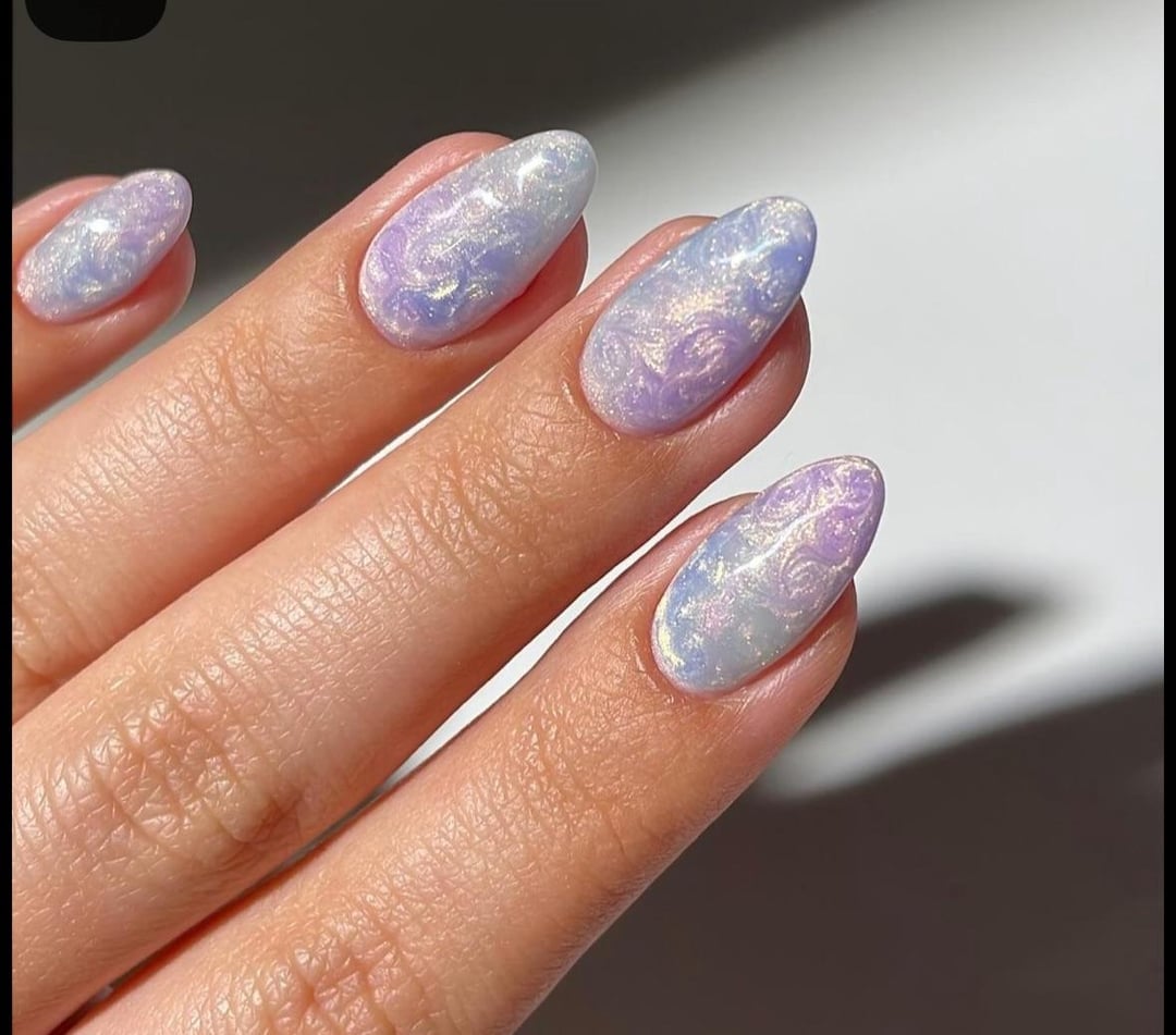 Your inspo is aura nails with a pearlescent topper on top, swirled around. They did you SO dirty