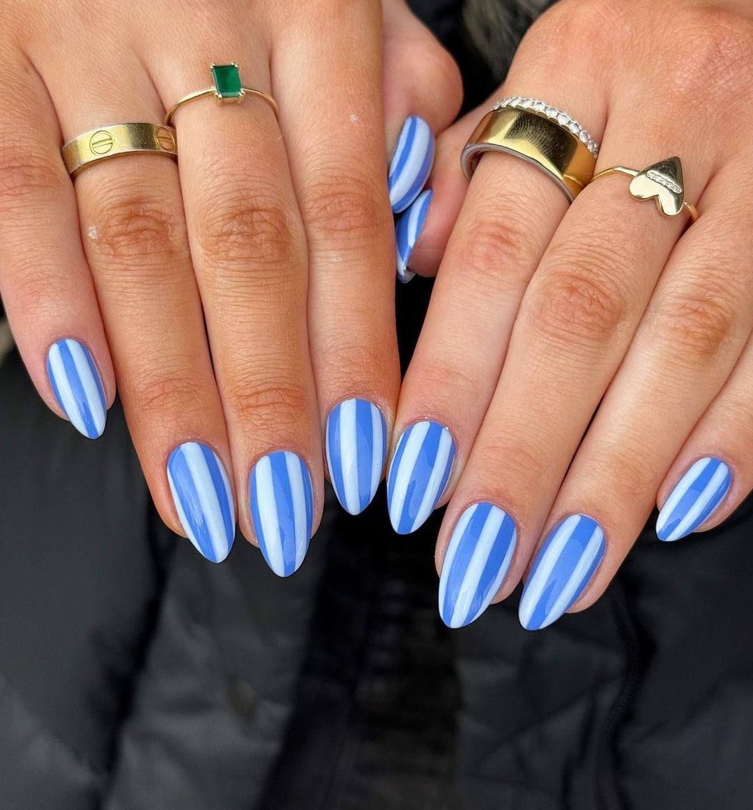 Super happy with the way they turned out! Done by my nail tech 🥰 Next time will for sure get all nails striped! Decided to go with lilac instead of blue by mathrulezzz