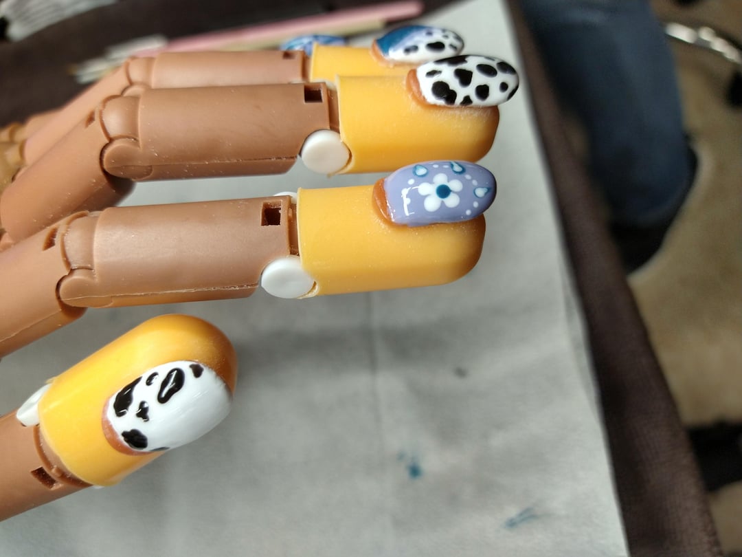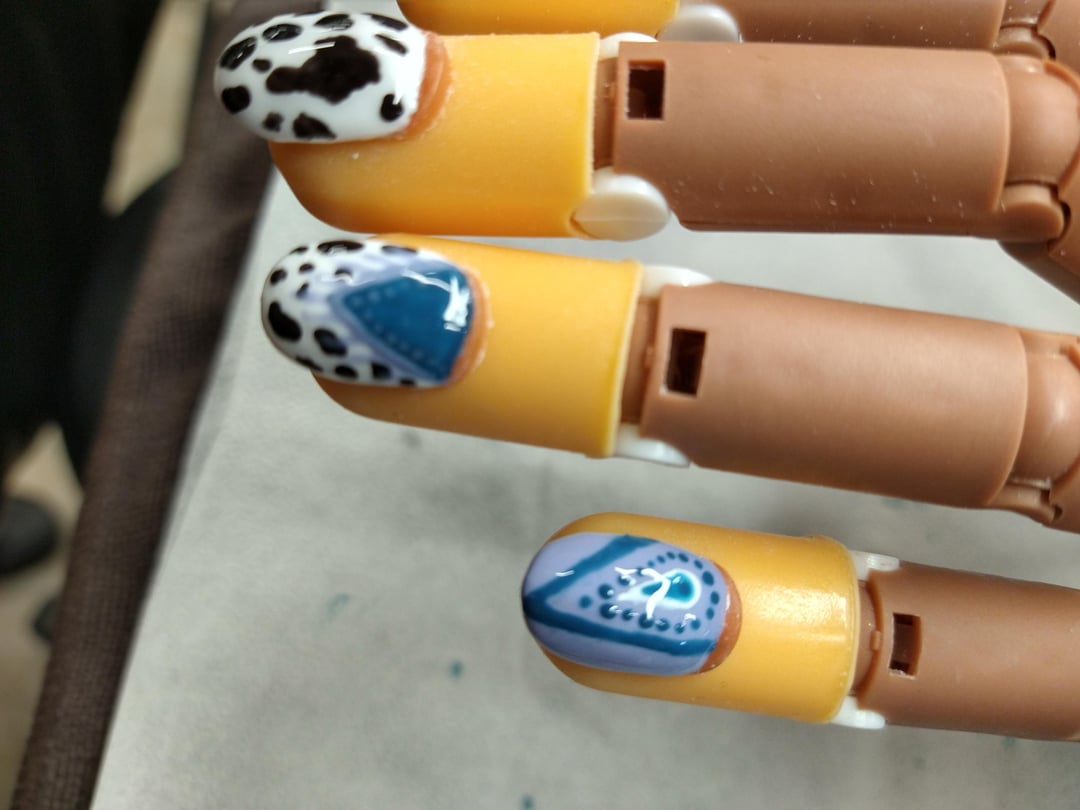 Practicing on the plastic hand