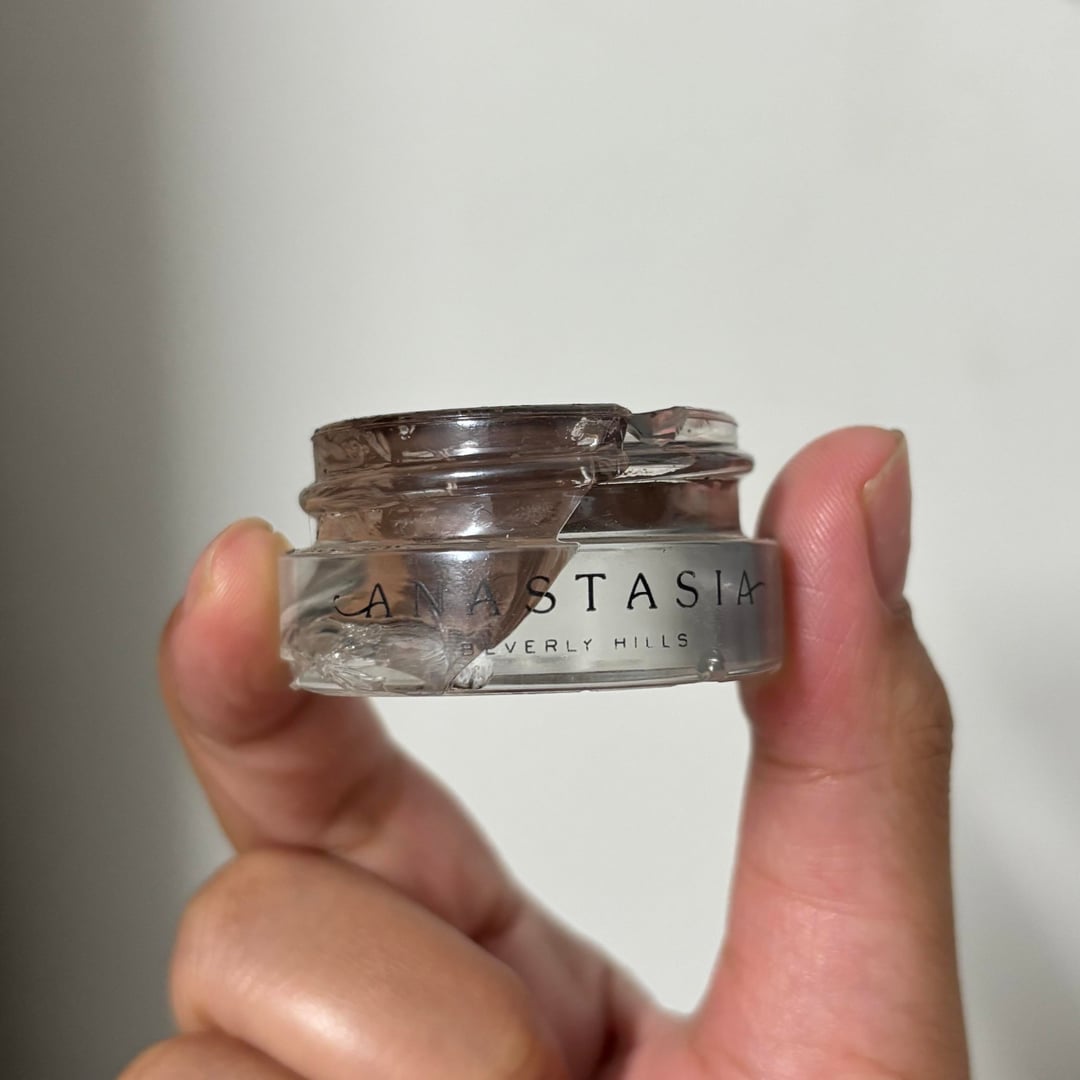 I was recently commenting on an ABH pomade pan post here, where I said I was using mine for 4 years and the next day I dropped it!! Thankfully the glass container of this is so thick that it didn’t shatter, it just has a crack down the side, but i obviously can’t use the same container anymore, I’m so sad I was so attached to it! It’s been with me through the craziest years of my life. Thankfully I have one of those tiny travel containers on which the ABH cover fits like a glove (last picture). I’ll be transferring whatever’s safe there.