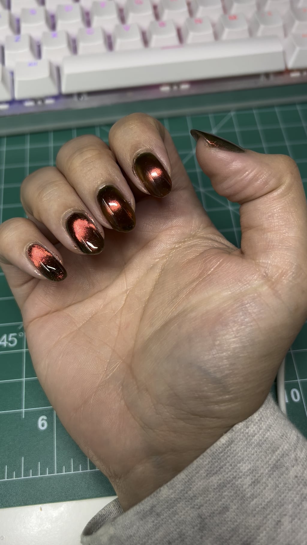 Finally busted open my bottle of BKL “I Choose the Bear” (2 coats)! Had time to play with magnetizing with the lab stirrer to show off the nuance on finger upside down to be closer to the magnet (pinky and ring) versus finger on top of the lab stirrer (middle and pointer). Love both looks but it’s nice to see the difference side by side.