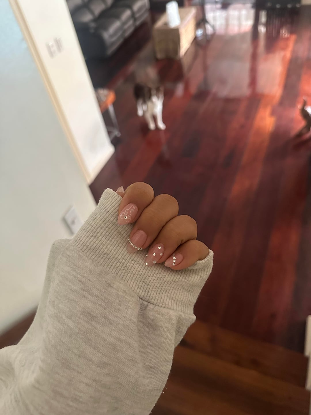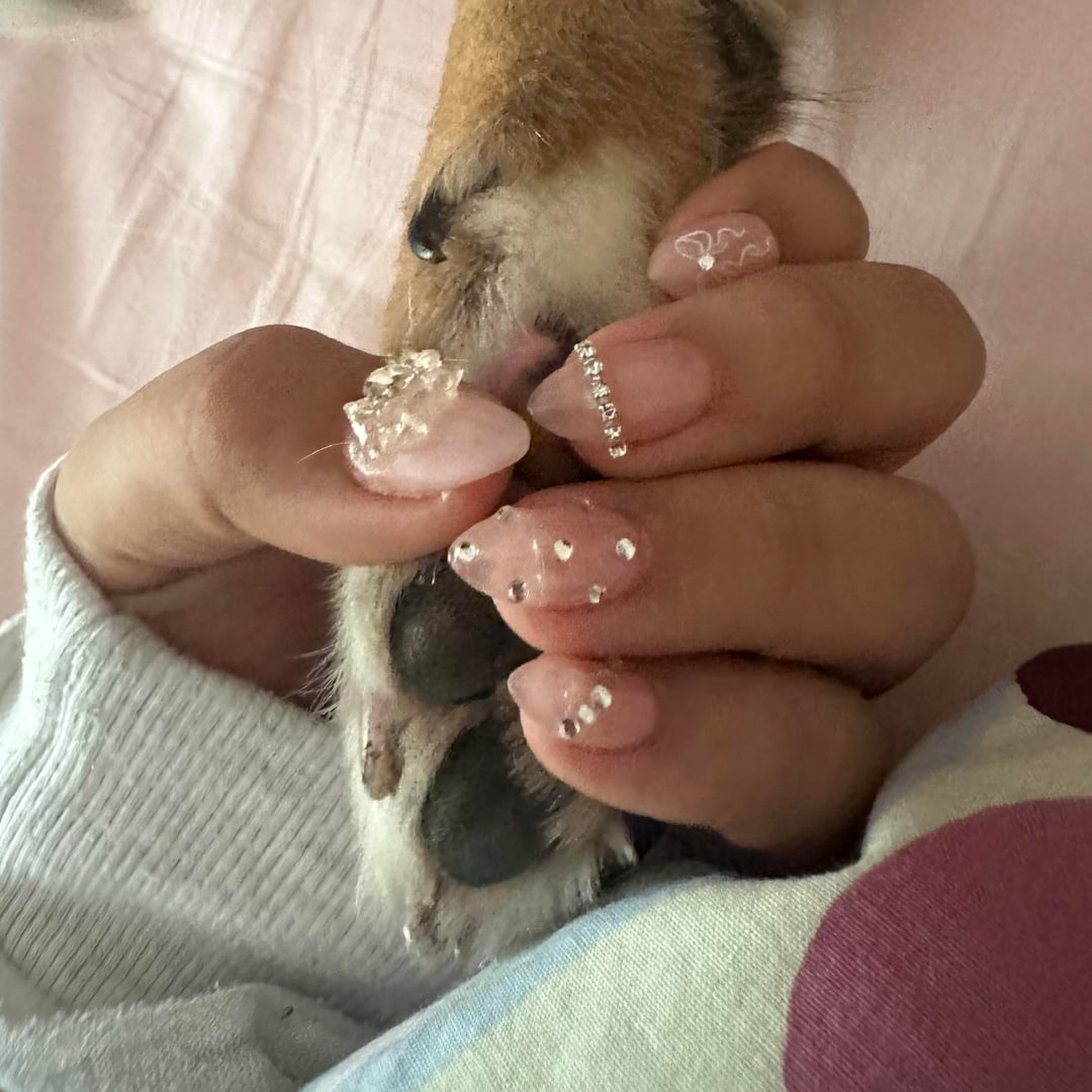 Pink crystal nailart💖