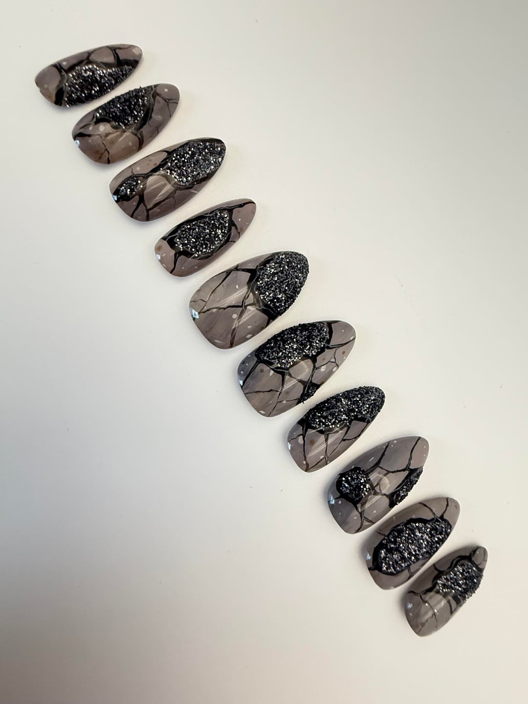 I actually mixed 4 colors of gray together loosely for a bit of texture. So before anyone asks what color I used, uhhh… I haven’t the slightest clue. Really awful picture of the palette on the last slide. Also, there is glitter everywhere. I think it’s even in my bed now. If anyone has cleaning tips for glitter, I’m open to suggestions. 🥲