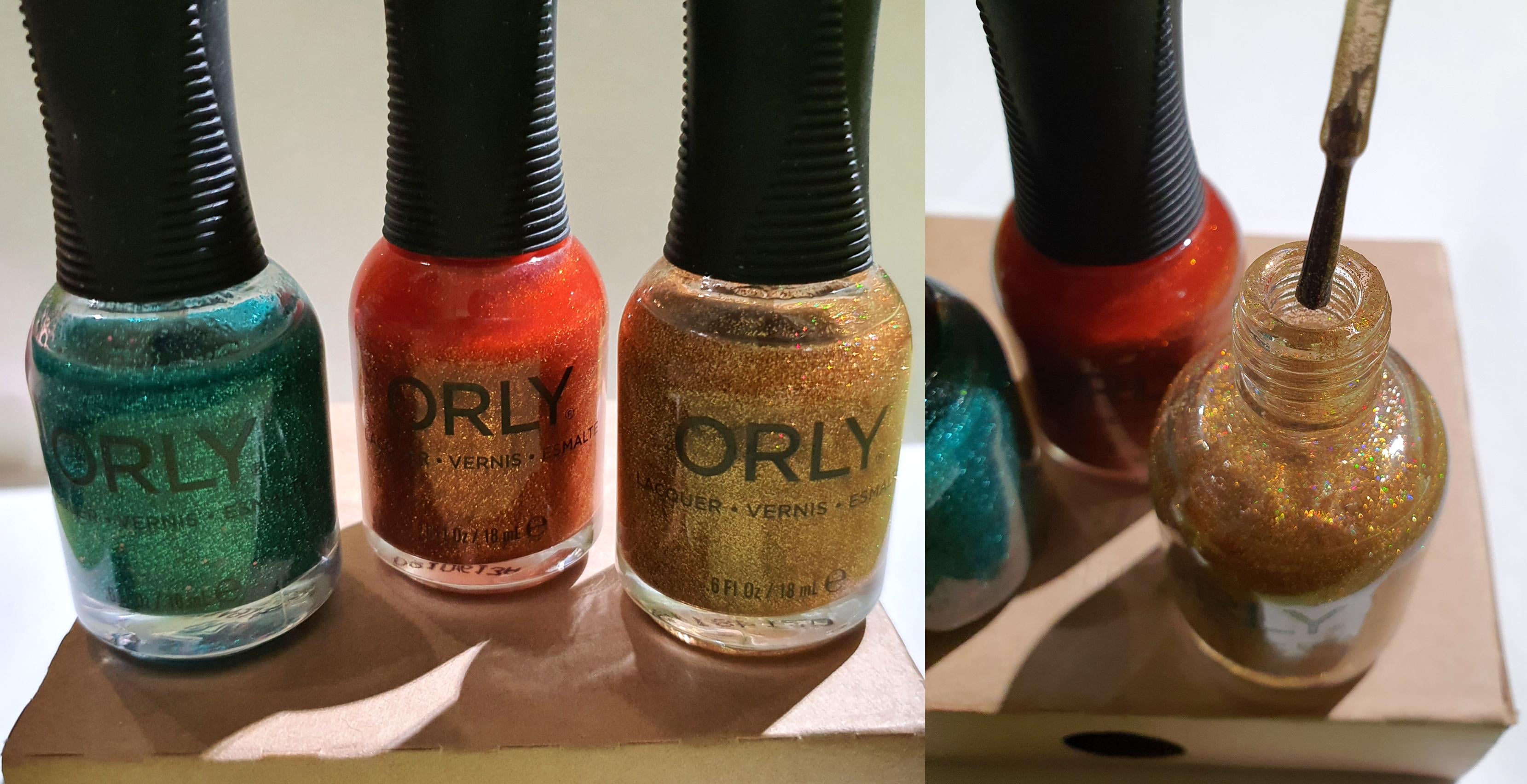 Polishes in photos are: Orly Steal the Spotlight, Orly What's the Password, Orly Bling