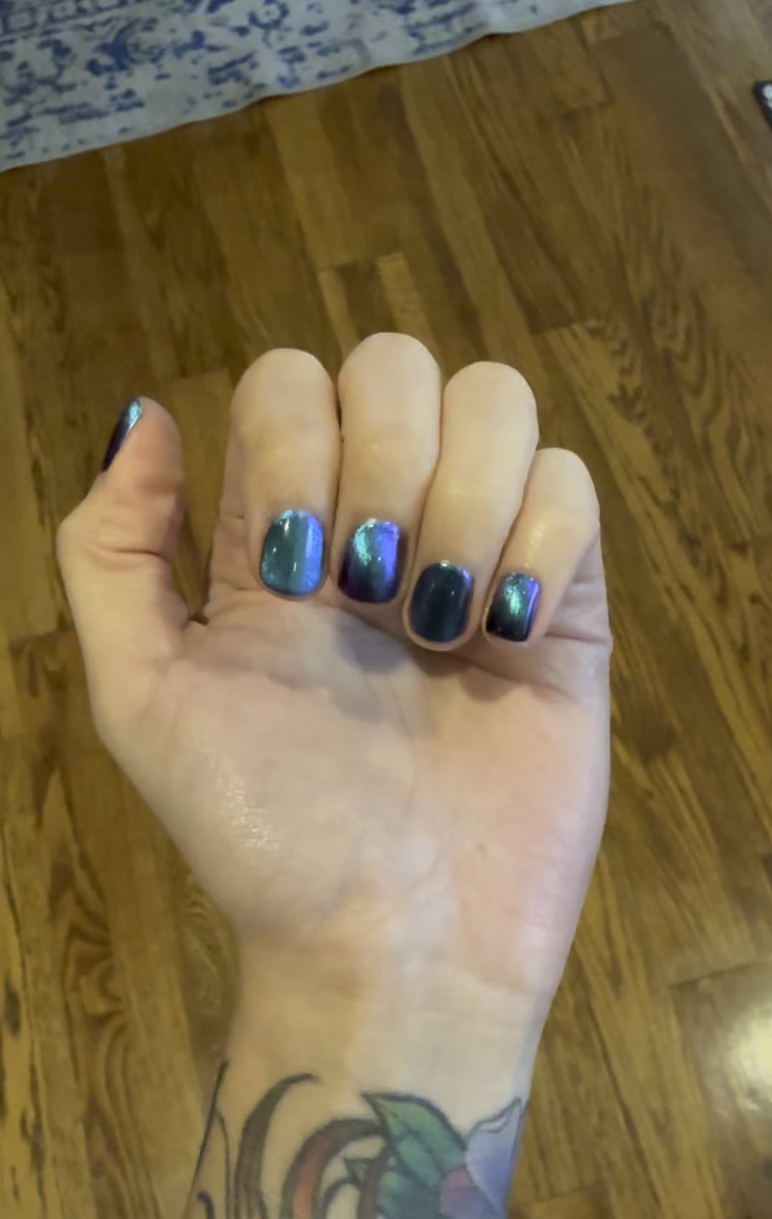 I’ve tried so many times to get glass bead nails and I just cannot seem to get it right! For this manicure only my pointer and ring finger were done using the 5D Print Factory tool. I’ve tried only magnetizing the last layer + topcoat, I’ve tried doing every single layer, I’ve tried spinning it fast vs slow, and no matter what I do I can only seem to get this velvet effect! I also always make sure my layers are thick enough to magnetize. I’ve seen lots of people get a great glass bead with this tool, so if you have any recommendations I would greatly appreciate it🥲🫶🏽