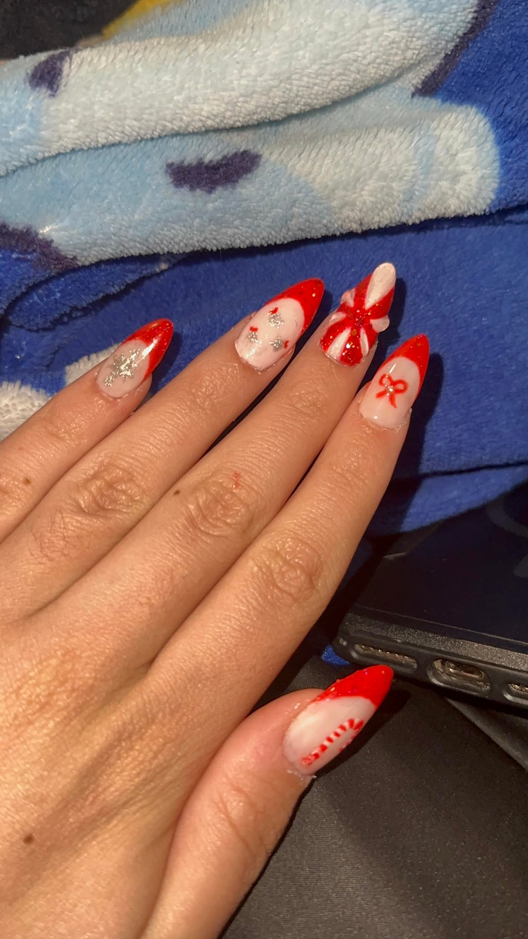 i don’t think i’ll be working with the silver gel polish again… and i’ll make sure my clean up brushes are actually clean lol i ended up with some streakies…. also WHOOPS used slightly the wrong pink on the ring… overall pretty happy with my first attempt at these.