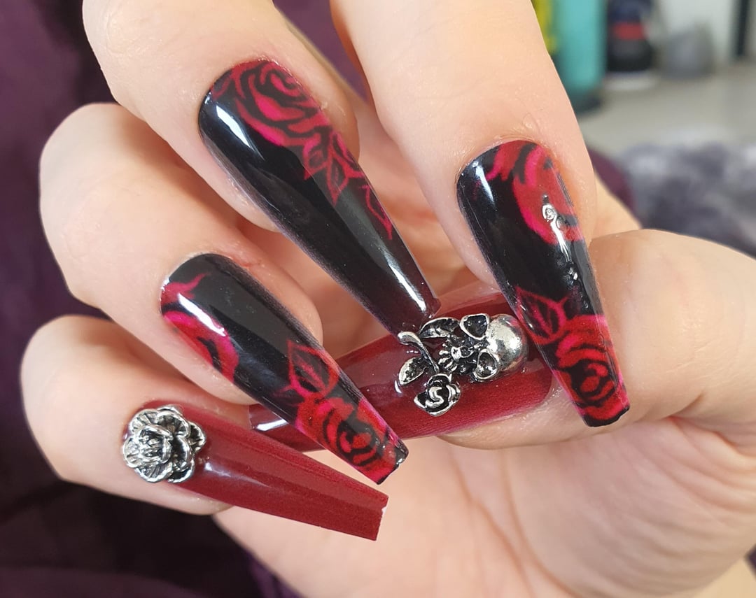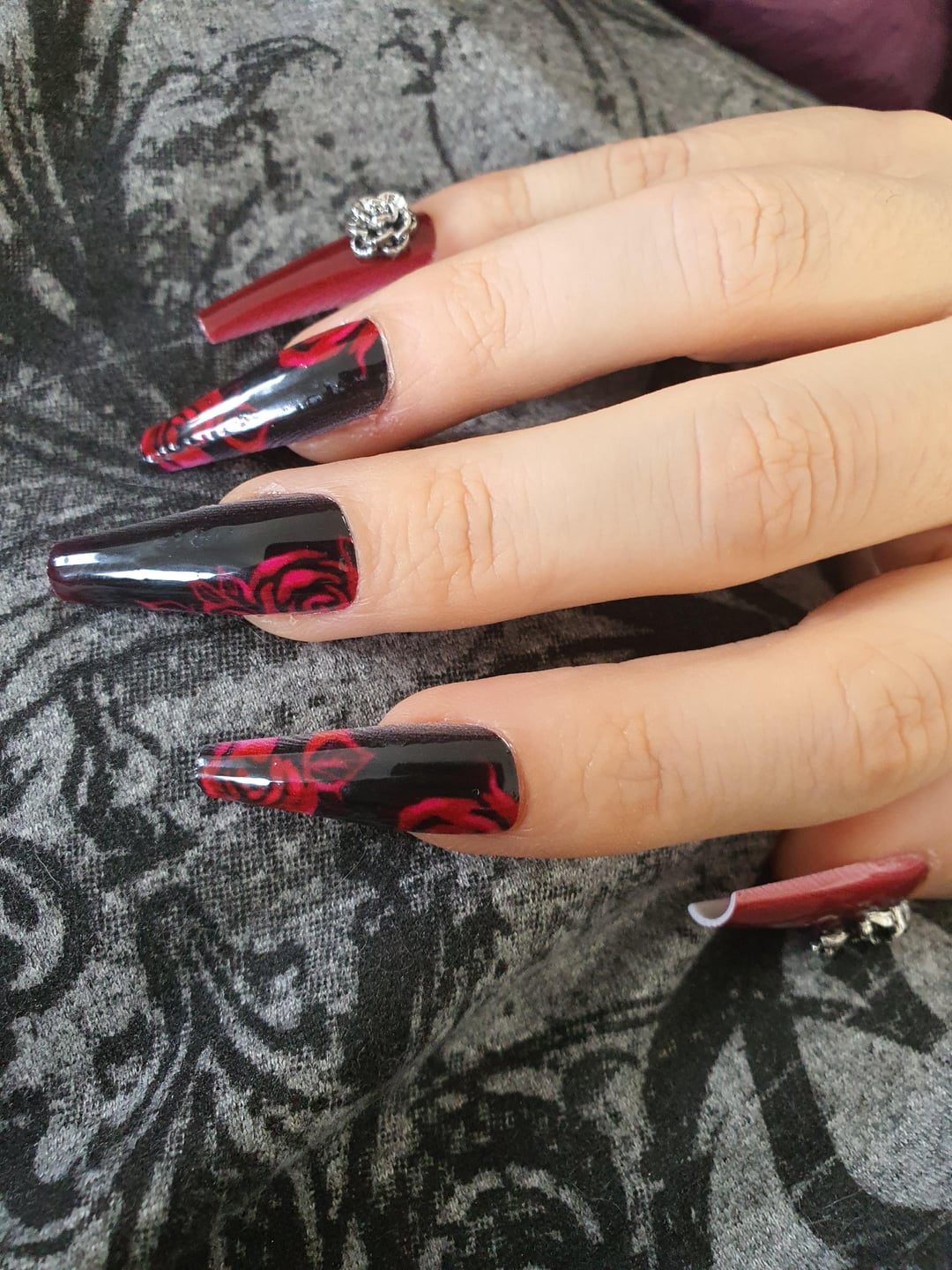 For this set, I just use a decorated press-on and add metal charms, glossy top coat for finition by Key_Opportunity_7082