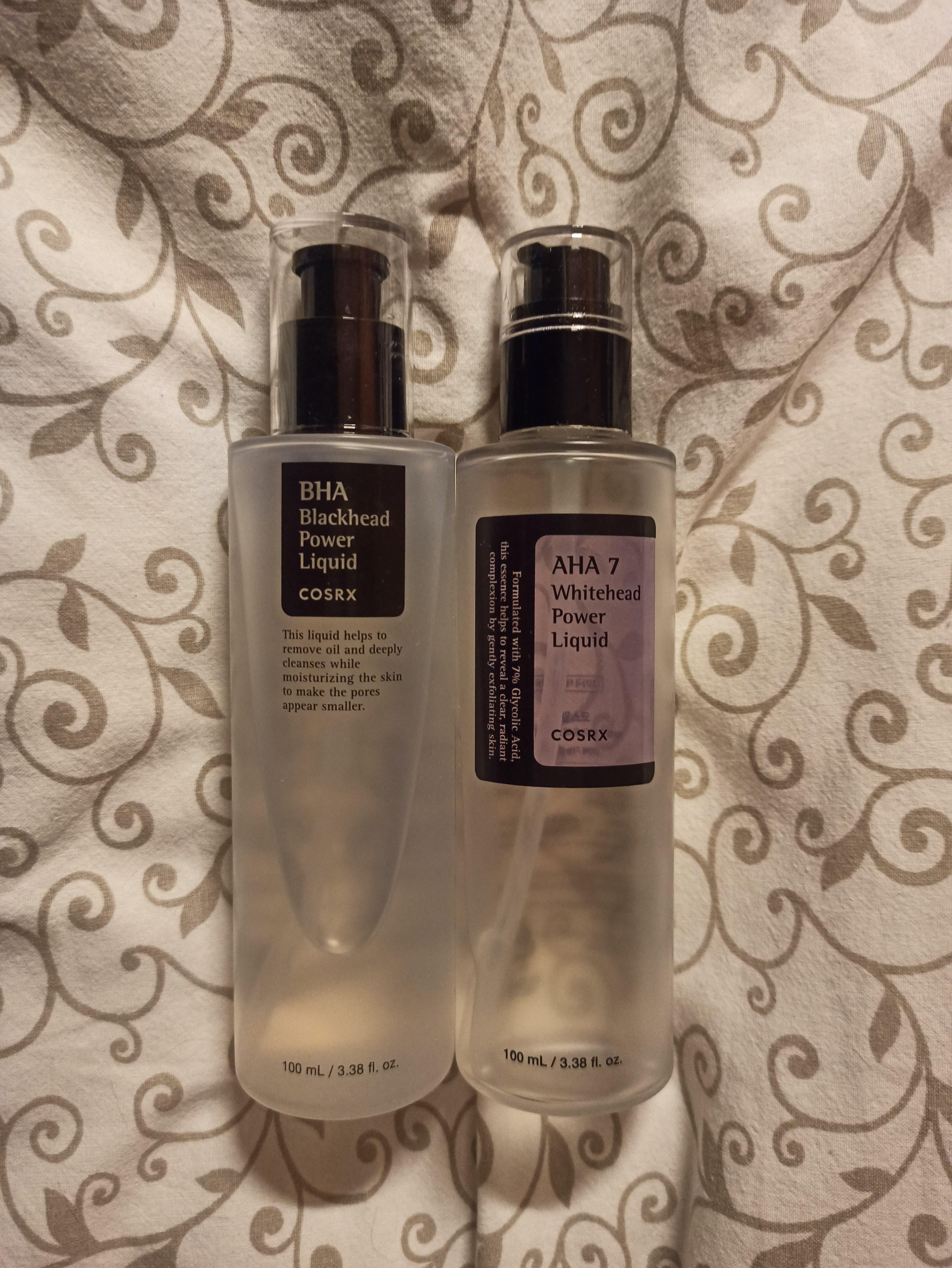I bought them bc I have a lot of blackheads, especially on my nose and some whiteheads too, until now I have used the whitehead power liquid all over my face with a cotton pad and then I let a gauze with the blackhead liquid rest on my nose for some time
