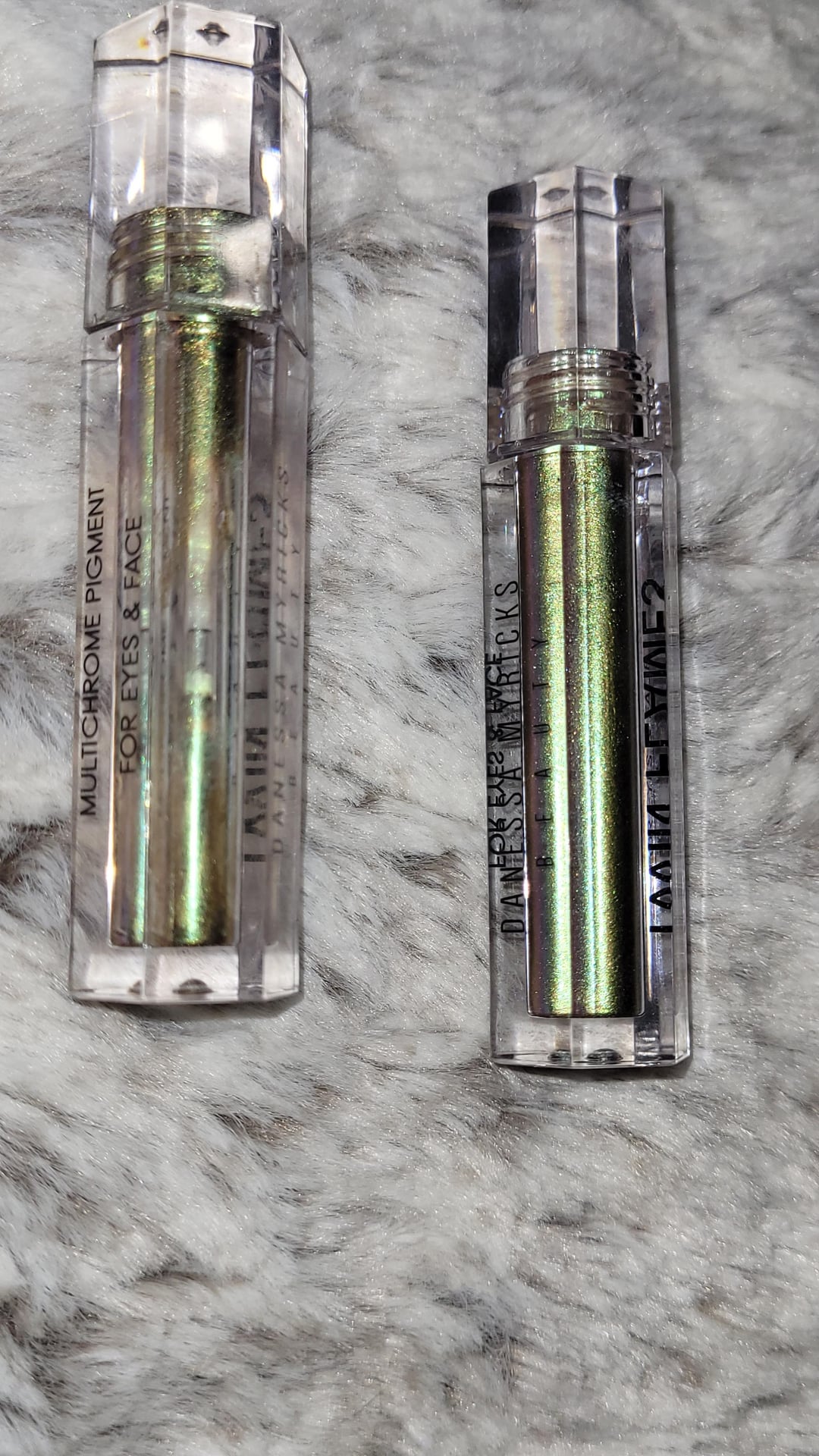 At first I wasn't sure if I would like this as it leaned more greenish/gold and thats not something I usually reach for.. but this ended up being stunning. Green, gold, shifts to blue and purple as well. It makes my eyes pop as well. I had to repurchase it.