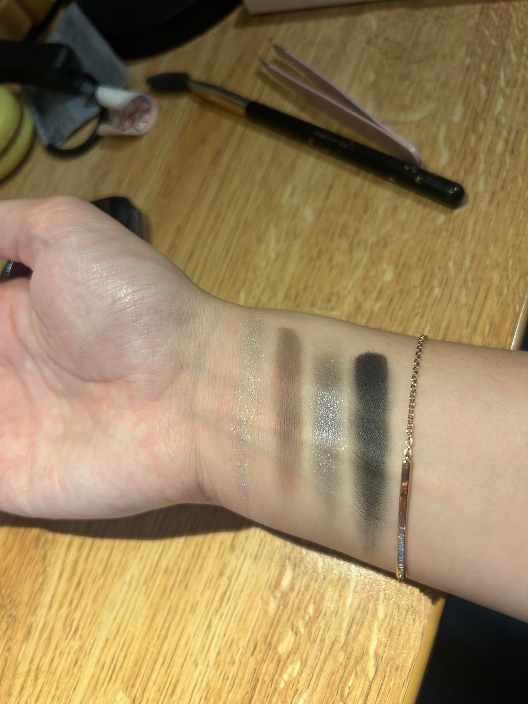 pics 1 and 2 are swatches, 3 and 4 are a quick look i threw together (my eczema is flaring up on one of my eyelids sorry they look lopsided) and the rest are packaging pics. the packaging is so pretty and high quality.