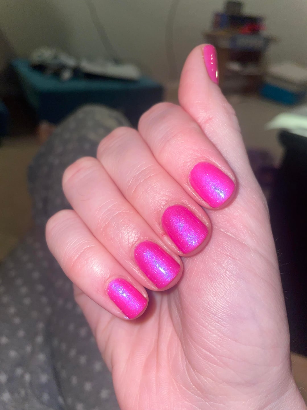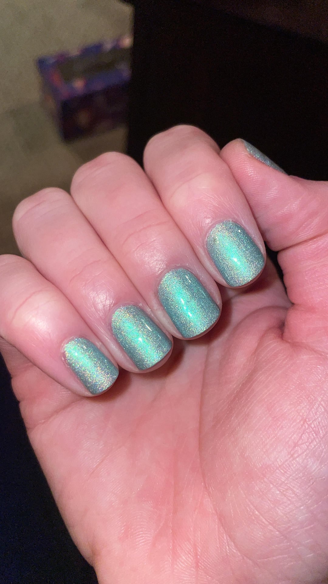 both mooncat polishes, very beautiful and applied so nicely! I was worried they’d be too thick based off previous reviews but nope. These were part of my lunar sale order. (ignore my awkward hand position for second photo 😂)