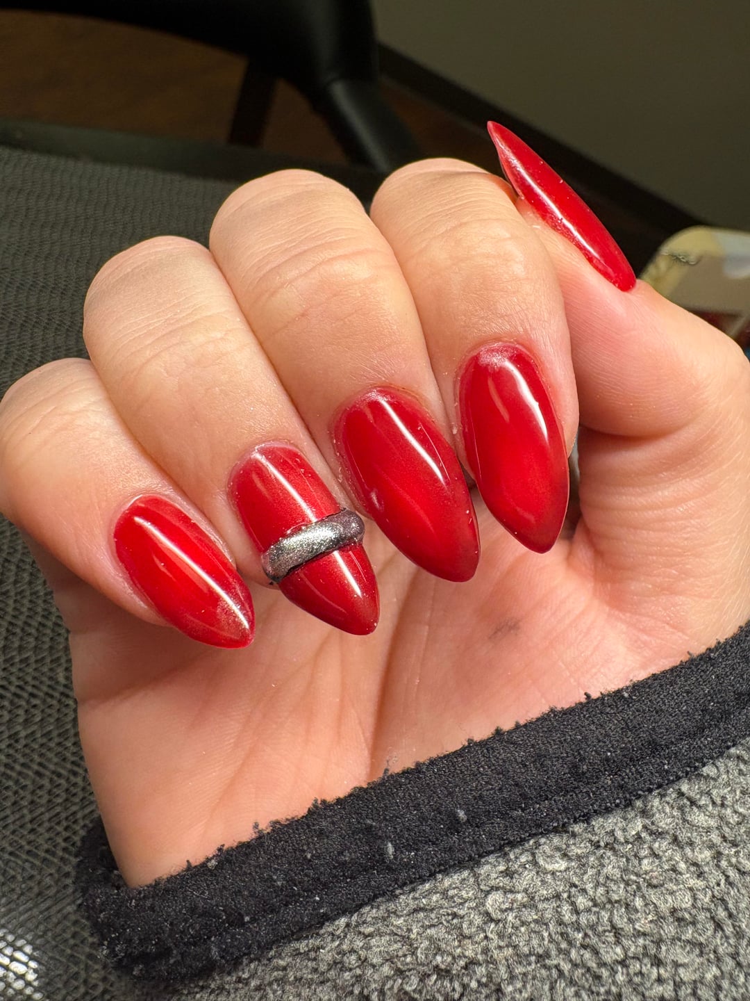 Spent the last seven ish hours doing these asymmetrical jelly cat eye nails for my courthouse wedding on Monday! by birdycrow