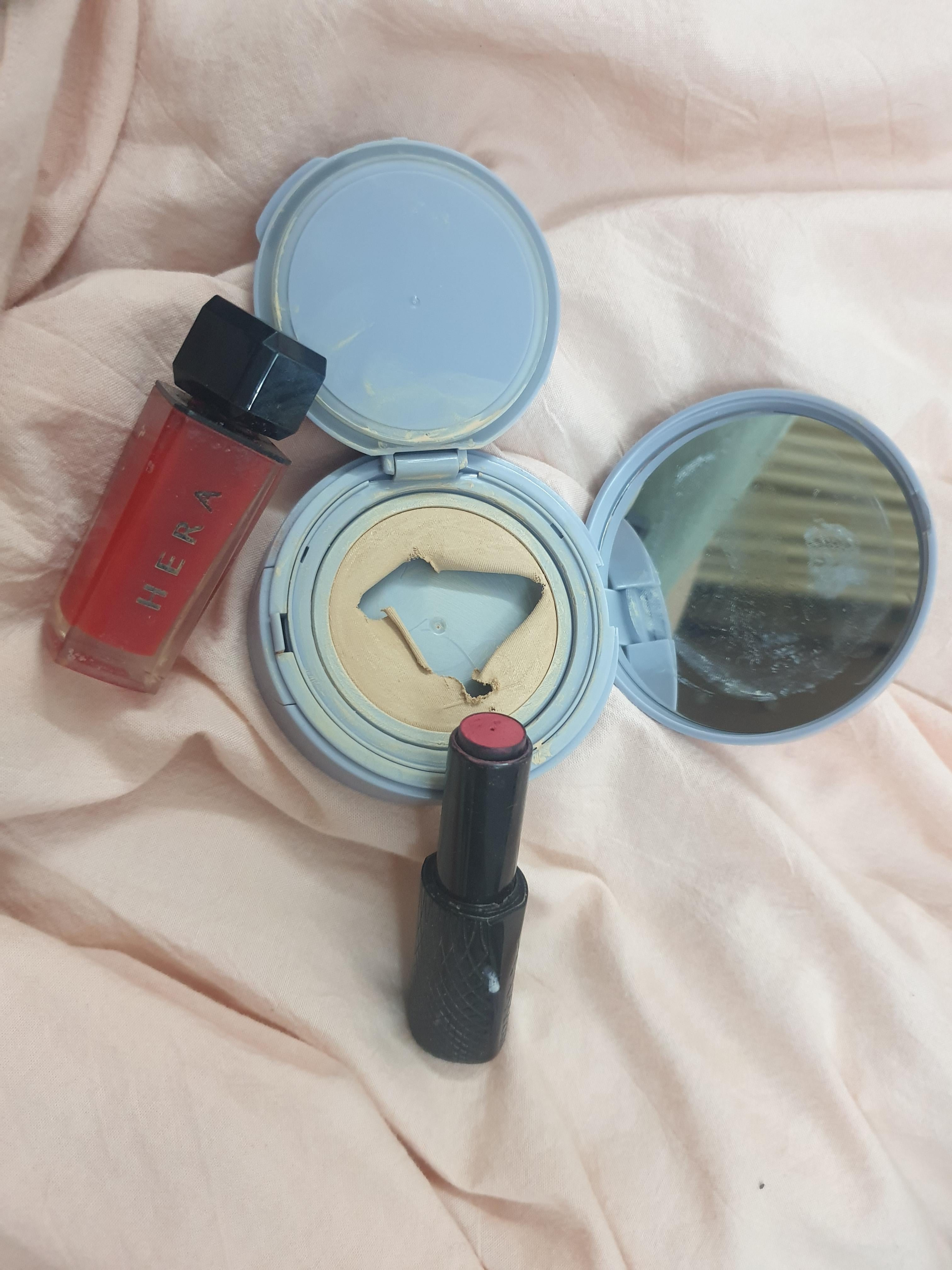 The lip products are so ancient both lines are now discontinued I believe. I tend to go through cushion foundation rather fast though, so I'm working on a liquid foundation this time. I'm a little intense about my panning, so I made sure to cut open to mesh net on the cushion foundation and used a metal spatula to apply the very last bits of my lip tint, thats how I know they're done haha