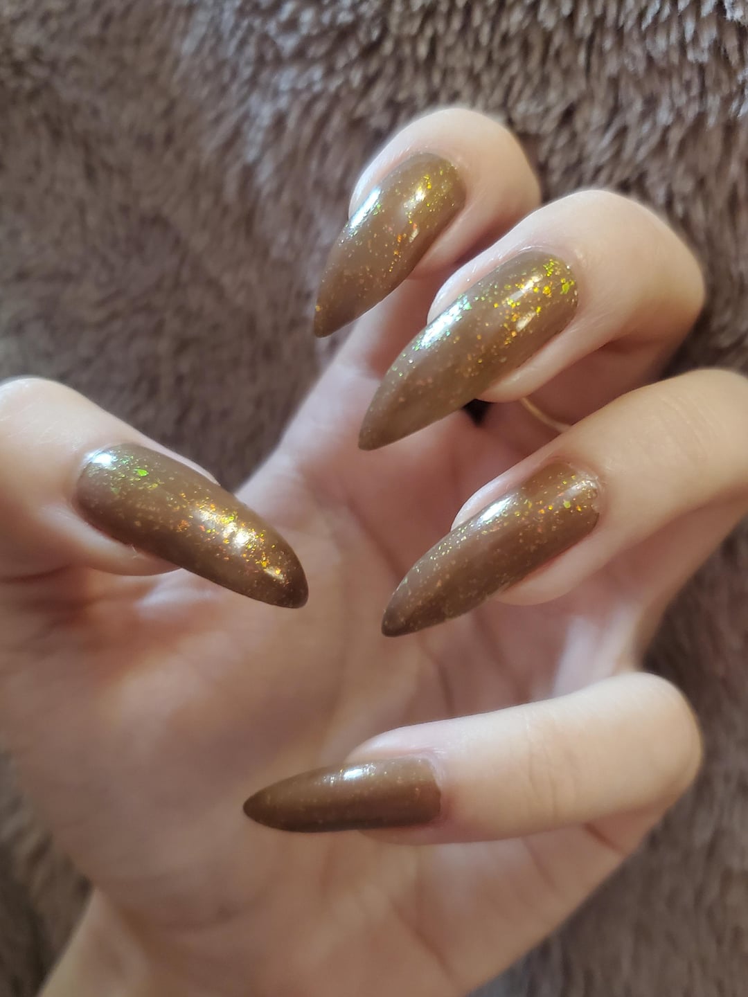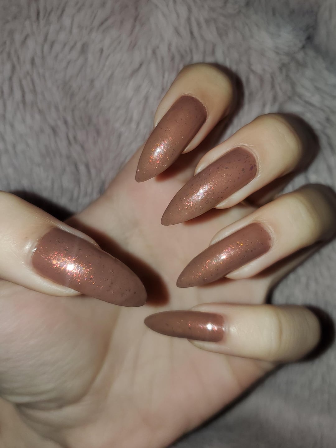 Sinful colors coffee drip + sally hansen crystal topcoat I just got a bag of new polishes that I'm dying to try out, but I'm going to attempt to wear this manicure for a few more days first because it really is stunning! by bugluvr