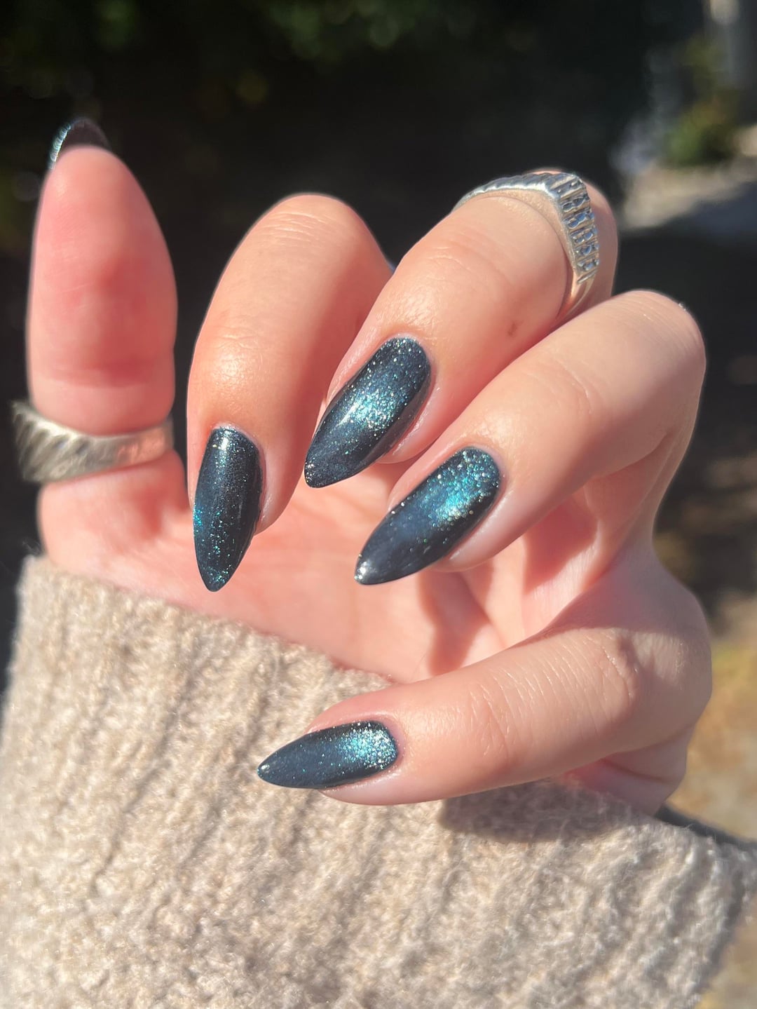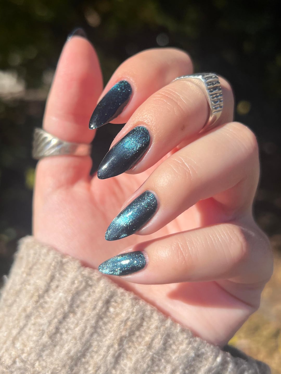 An untried from my very first lacquer order in January 🥹 Can’t believe I didn’t try it sooner!! Bonus pic with my Ren Faire dress 🙂 ILNP Ritual 🌙 Londontown GelGenius base coat & Cuticula limitless QDTC by mistymomo