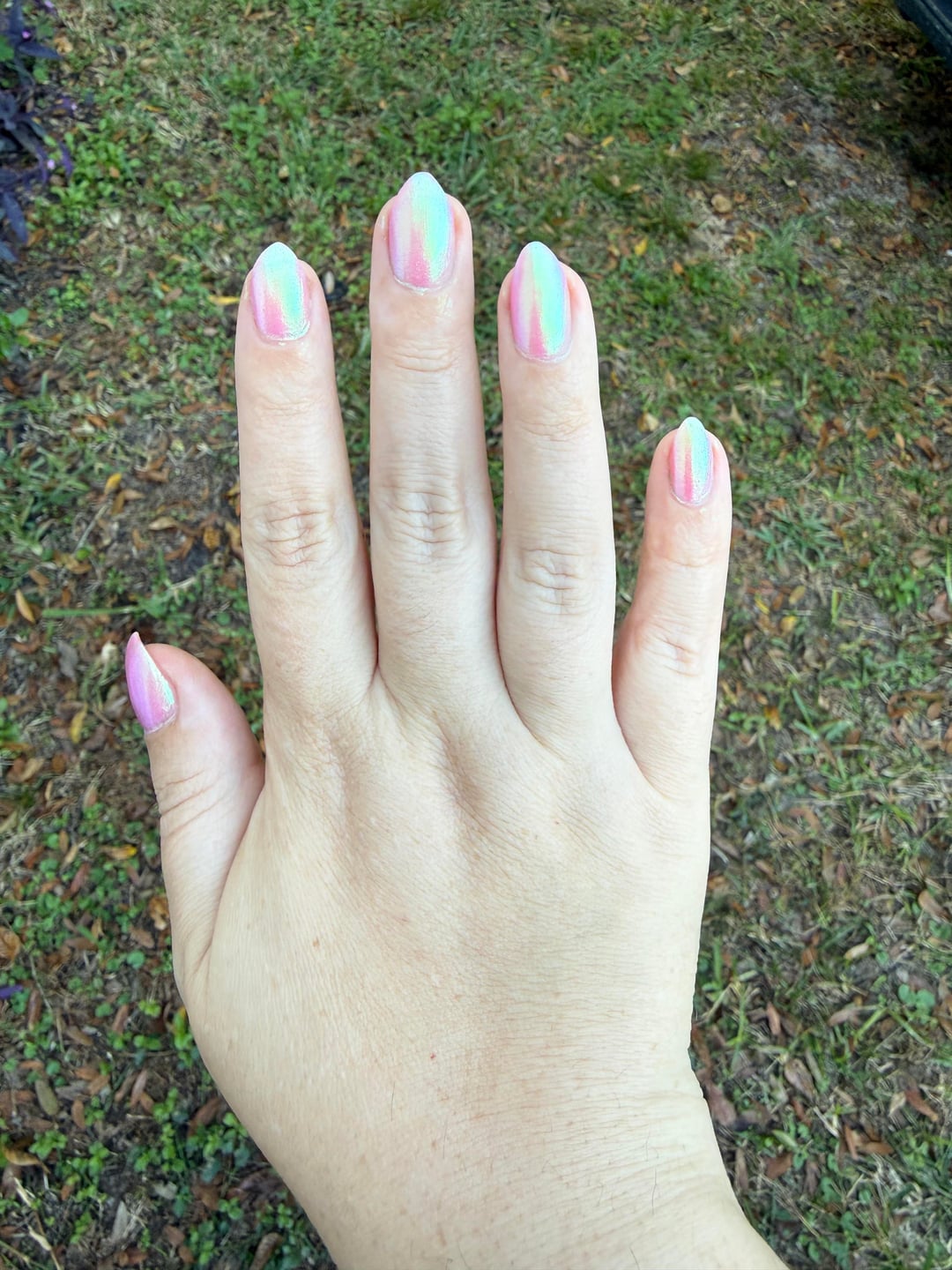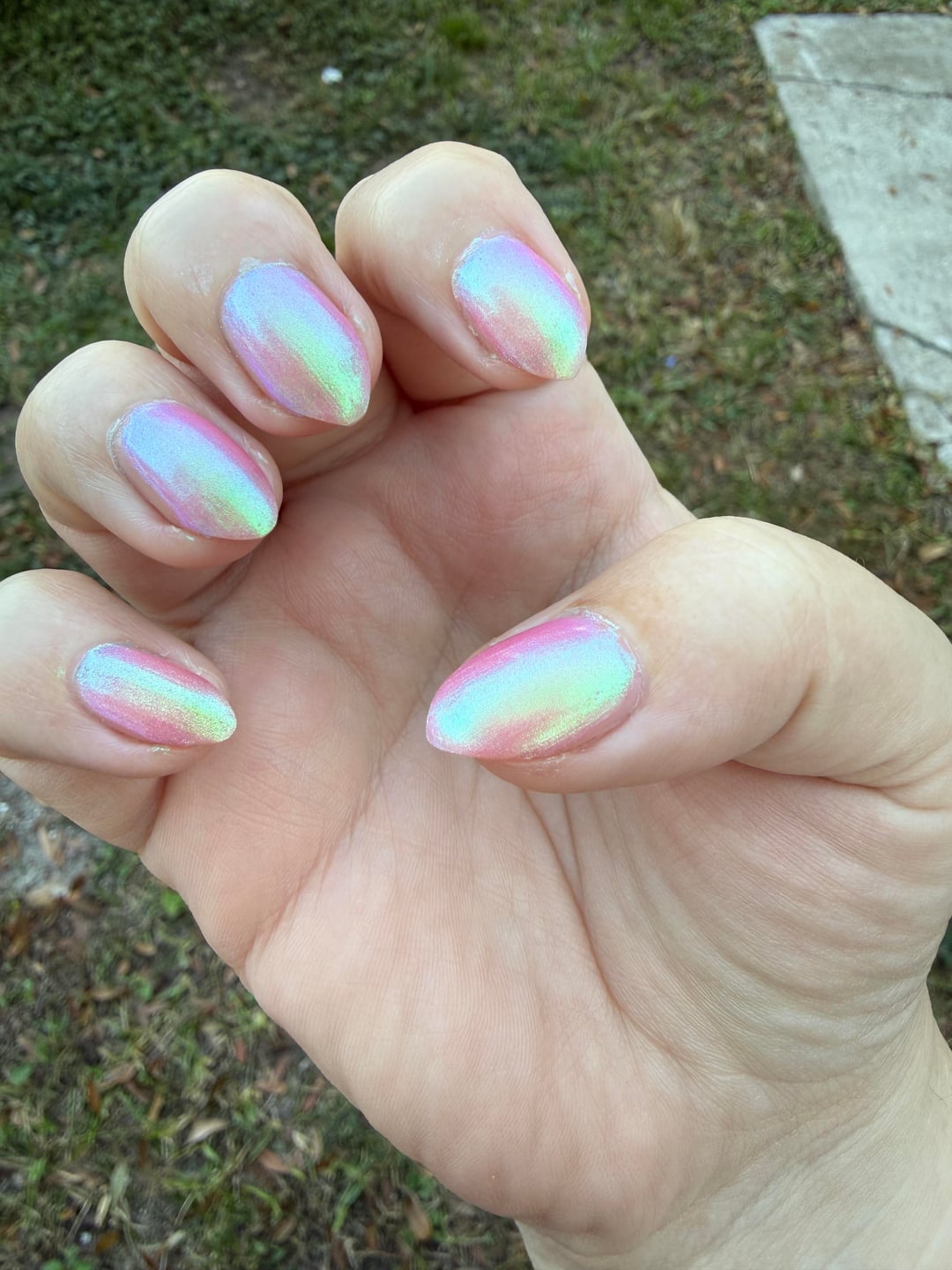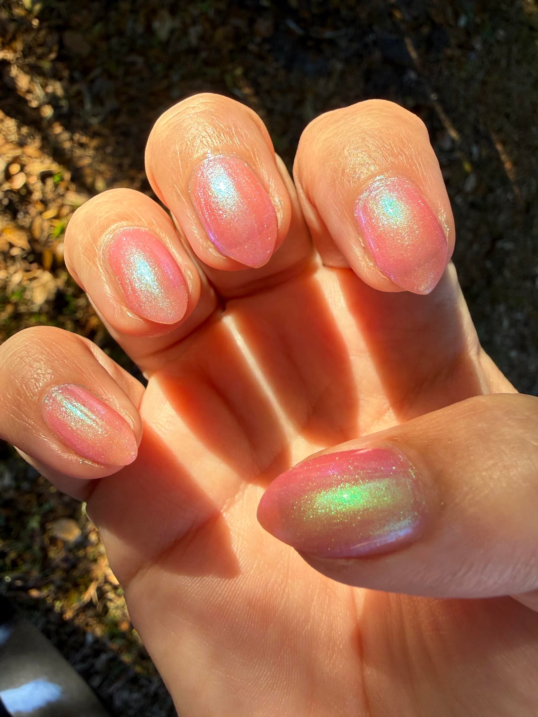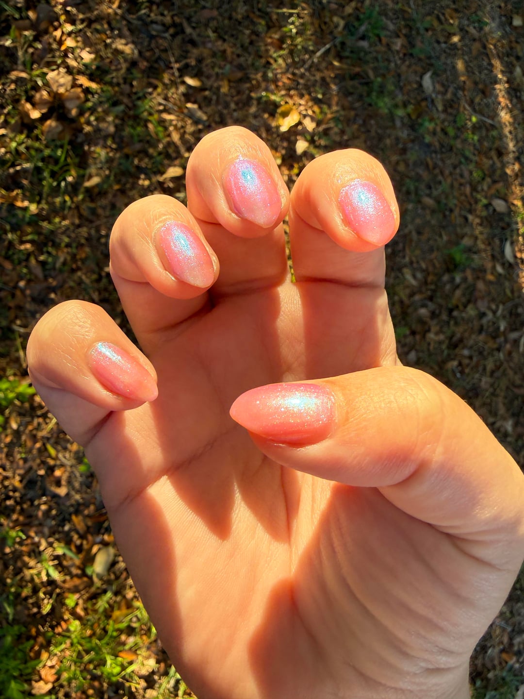 I absolutely love this polish. There is a blue shimmer that you can see in direct sunlight. PFD knows how to make them glowy 😍