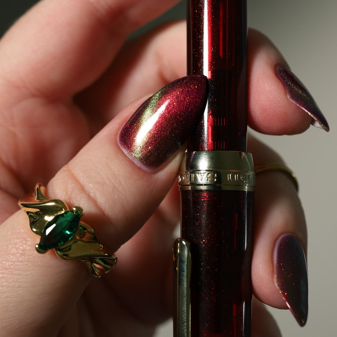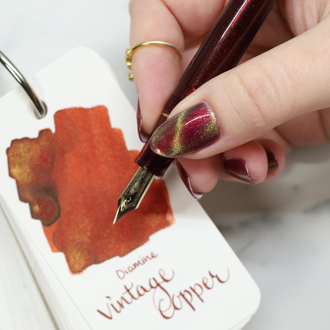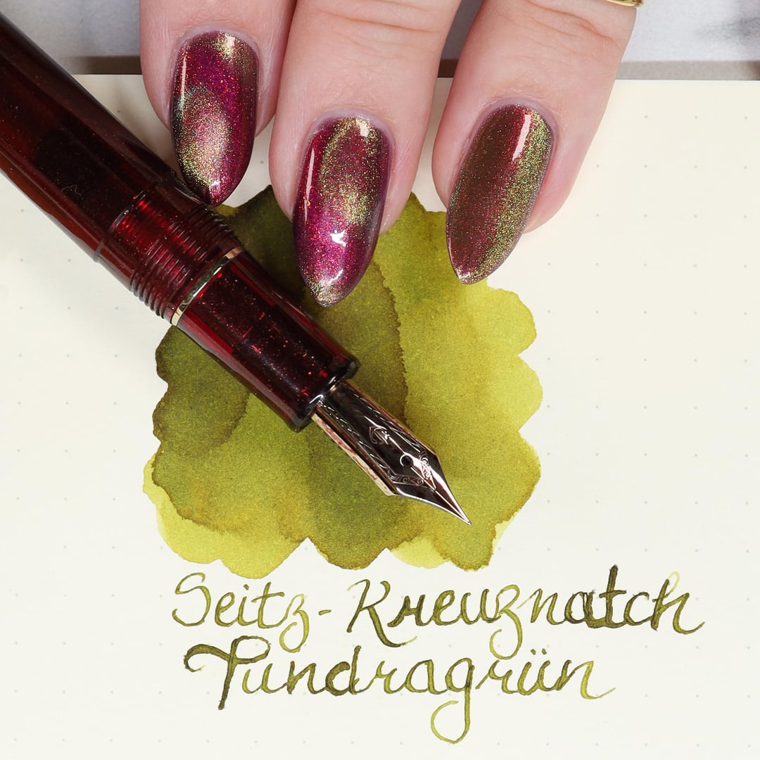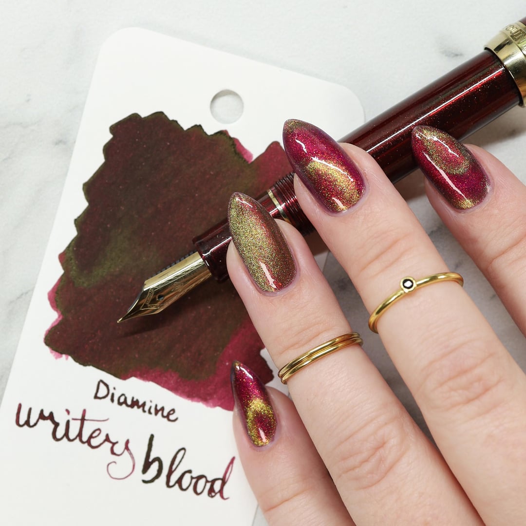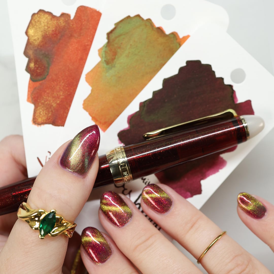 Beautiful polish, beautiful pen and beautiful inks! Omg I had no idea there is such a variation of ink shades with two shades in one bottle?! I need to look into this because that is so freaking cool!