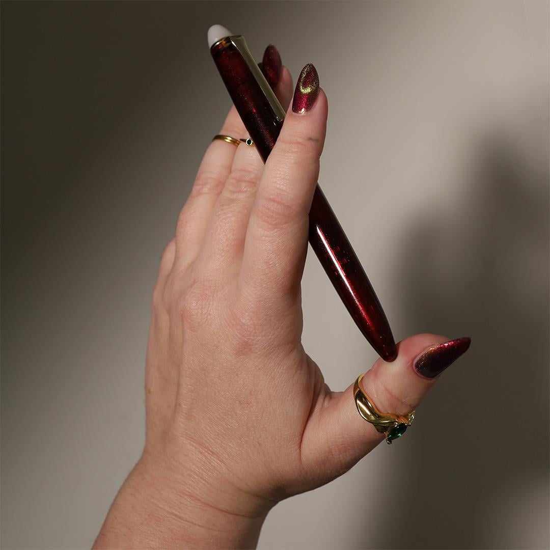 Once I realized I had the perfect pen to match my nails, it was frankly inevitable that I'd try to add an ink to make it a 3x matchy-matchy combo. Sadly, red is a wildly underrepresented color in my ink collection (I blame the association with essay corrections and test grading), but I pulled three colors that I thought might be pretty close from my Col-o-ring swatches.
