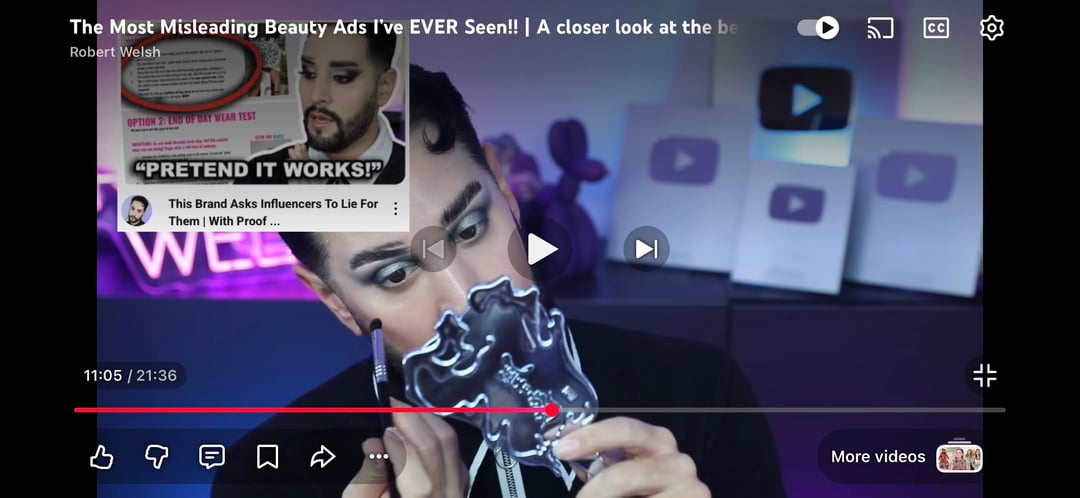 Around a year ago, Robert Welsh posted about a brand telling influencers to fake how good a product was. He just posted a video a few hours ago where he watches an ad of Il Makiage’s blurring primer, calls them out for deceptive marketing, and put up a screenshot of the thumb of the video where he talks about the brand asking influencers for the fake review. He never outright says it’s them, but it is heavily implied.