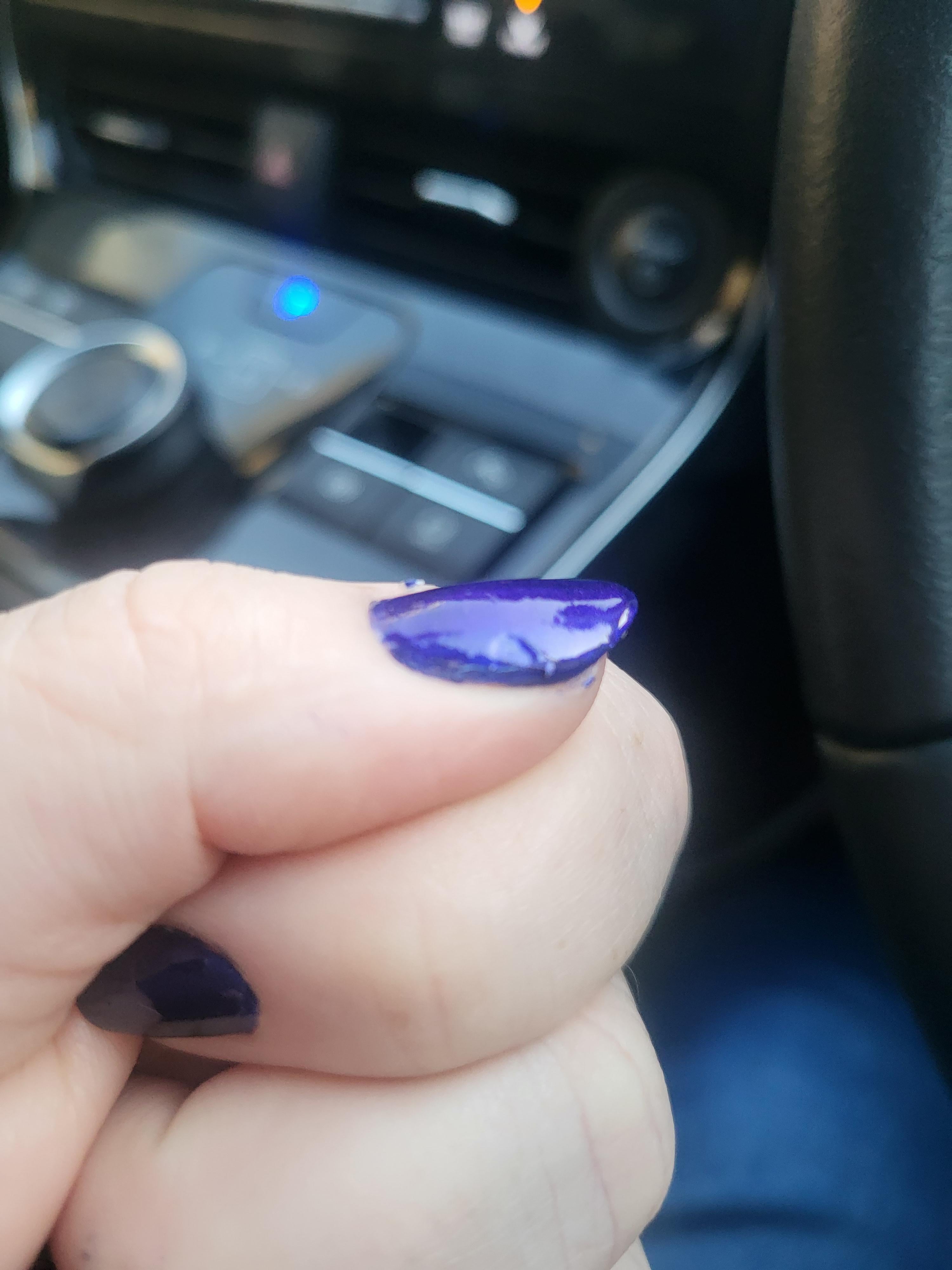 quick dry top coat will help the whole manicure dry faster. Also sometimes doing thinner layers will help. Polish can also take longer to dry if it’s hot or humid. Doing nails in the car seems difficult, like where do you set things down so they won’t spill and can be easily reached and the fumes seem like it would be problematic 😵💫 Though I do my nails on the flat arm rest of my couch or sometimes use a small lap desk on the couch at night while I watch tv lol.