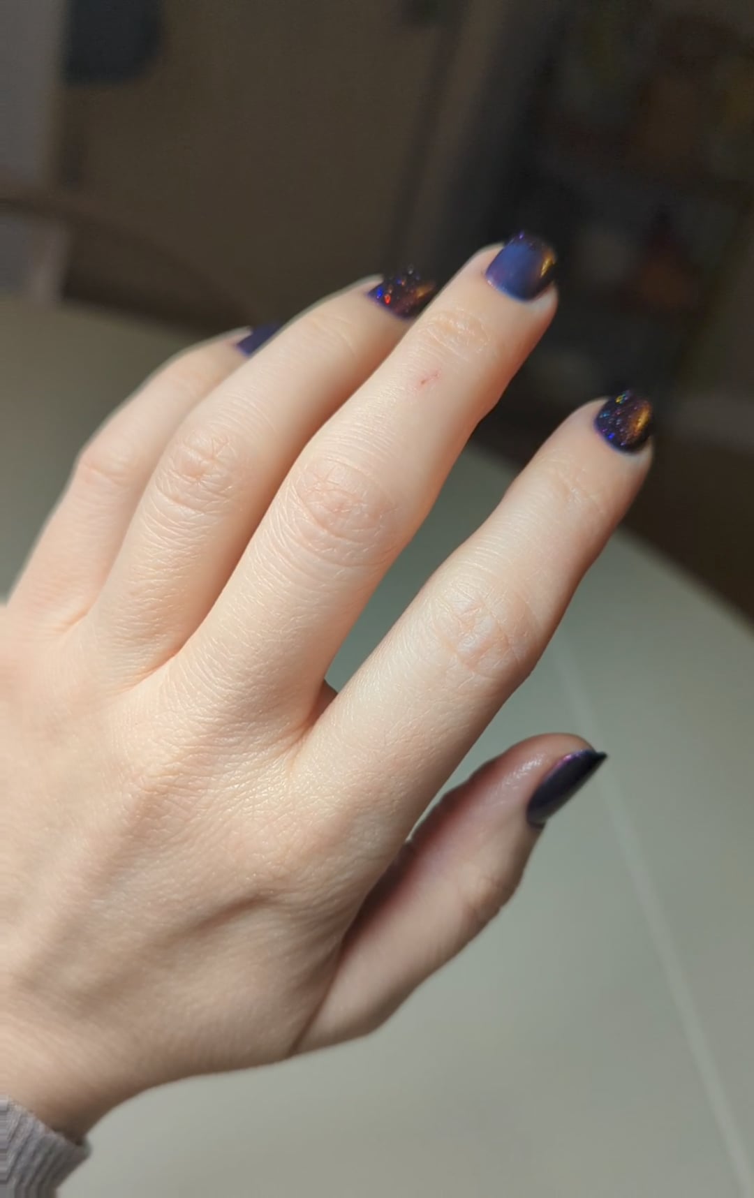 I'm kinda obsessed y'all!! This is 2x Ethereal (now Haunted Polish) – Cool Night, and one coat of Mooncat – Supervillain on the accent nails. Basecoat is Sally Hansen – repair+rescue, topcoat is Cracked – QDTC by spare-toad