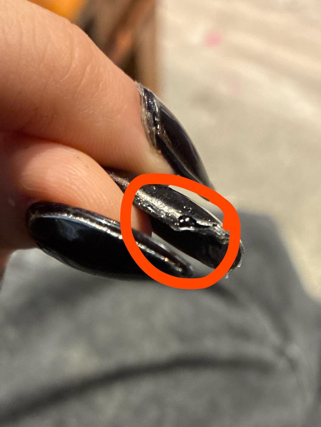 obviously the top & bottom of the nails seem fine but along the chrome bit i can press on the nail and make dents & part of my thumb nail snapped off & it’s gooey inside ? is this okay bc obviously theyre not meant to be snapped or should i message the seller ?