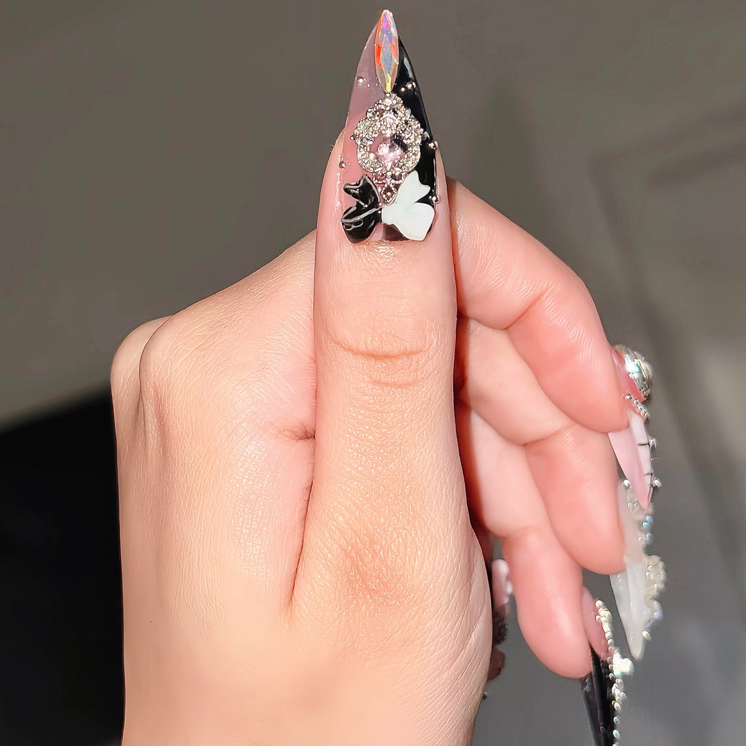 Wanted to go for a jirai kei type vibe for these! I still have yet to begin my other hand though. by gothclomia