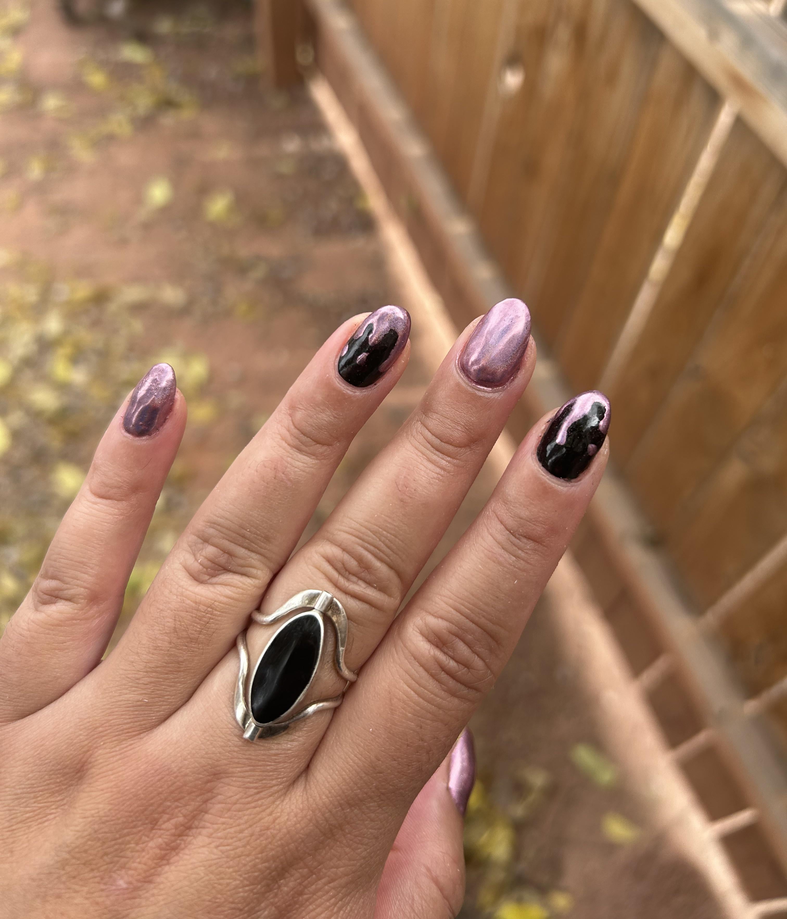 OceanDrift45 on November 18, 2025 8:07 pm For a first time using chrome powder this looks really pretty. The pink chrome came out super smooth and the black accents make it pop. u nailed it for ur first try it looks amazing.