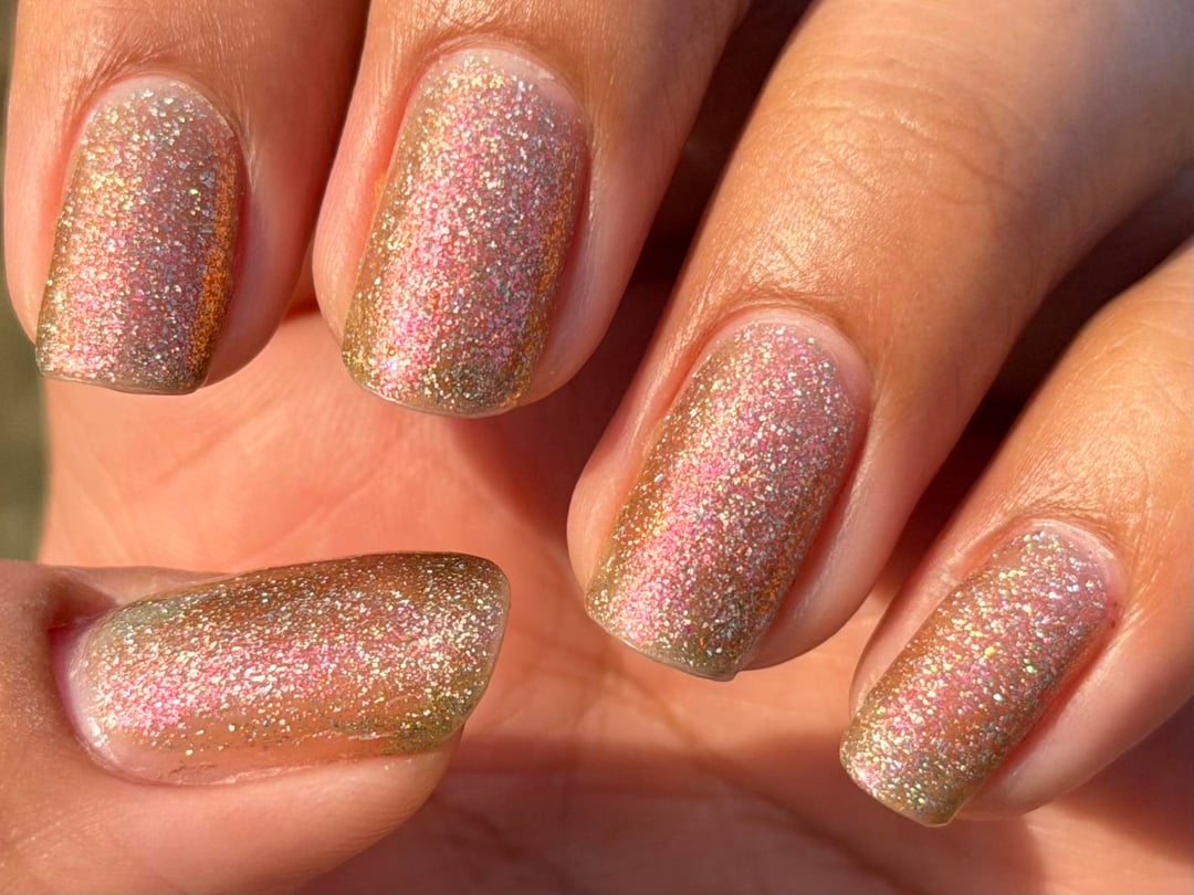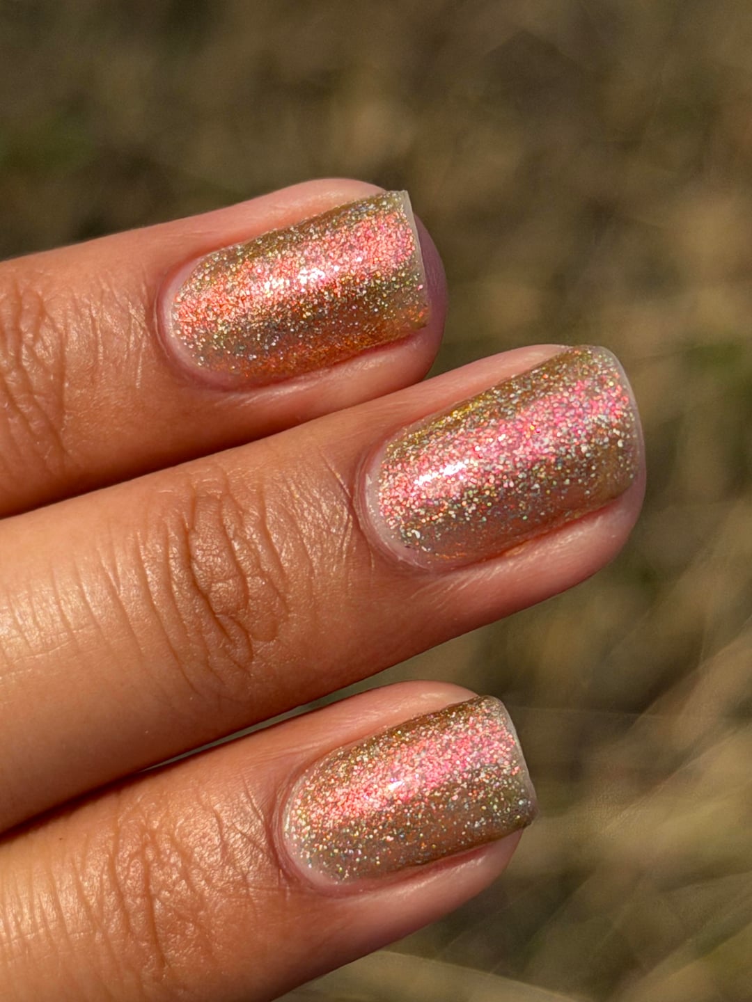 i think this might have just become one of my favorite polishes in my collection. like it’s simple but there’s just something about the pink / gold shimmer and glitter 😍 by soooyah