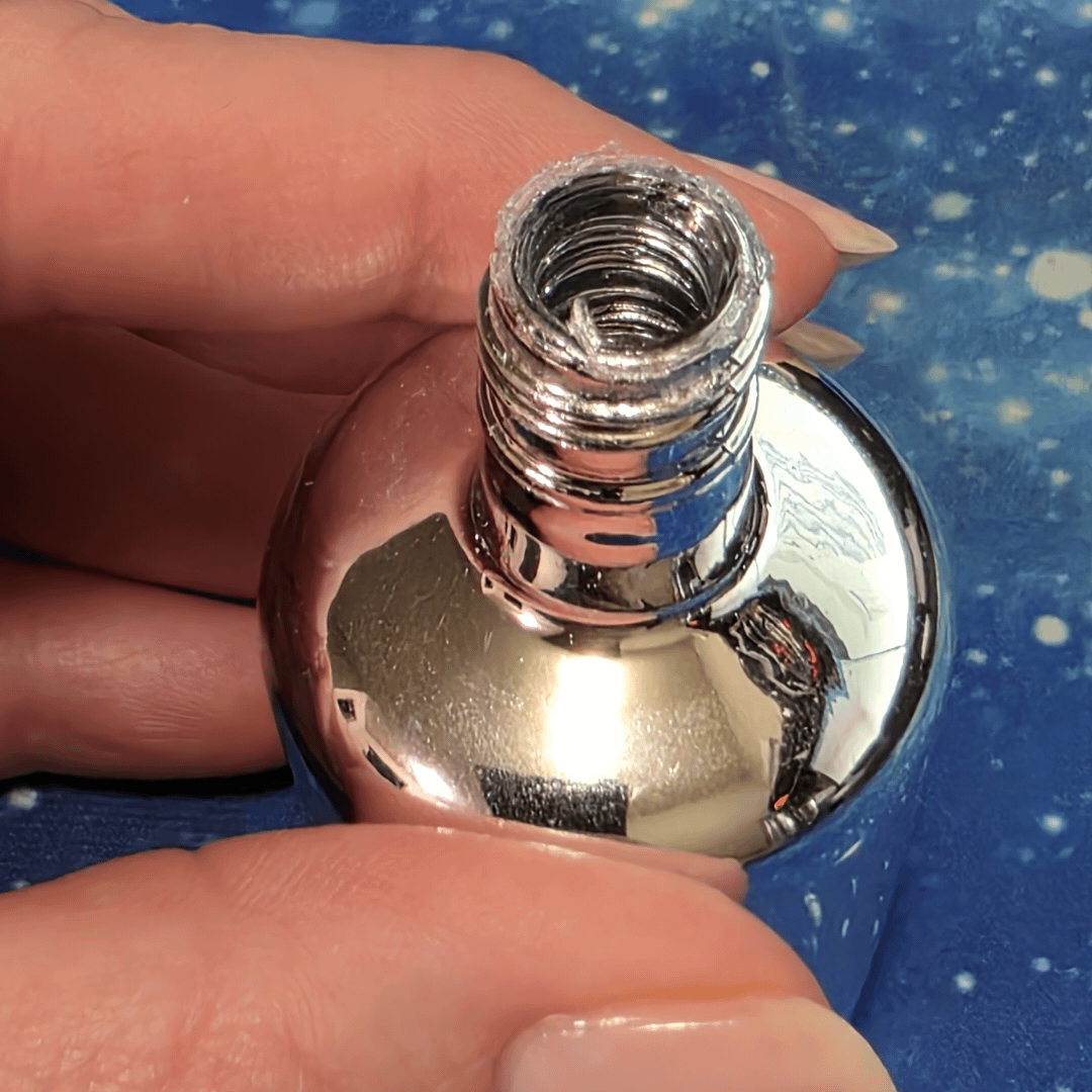 I use a strip of unraveled cotton ball, but I wrap it around the bottle threads and then use a plastic pipette to apply acetone so I don’t get any in the polish. Then I let that sit for a couple of minutes: after it’s had a minute or two to sit and soak, the cotton threads all come off along with the gummy polish. If there are any stragglers, they’re easy to remove with tweezers or a paper towel.
