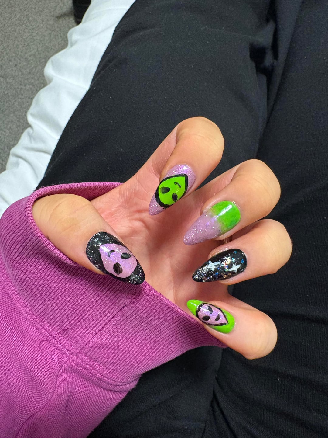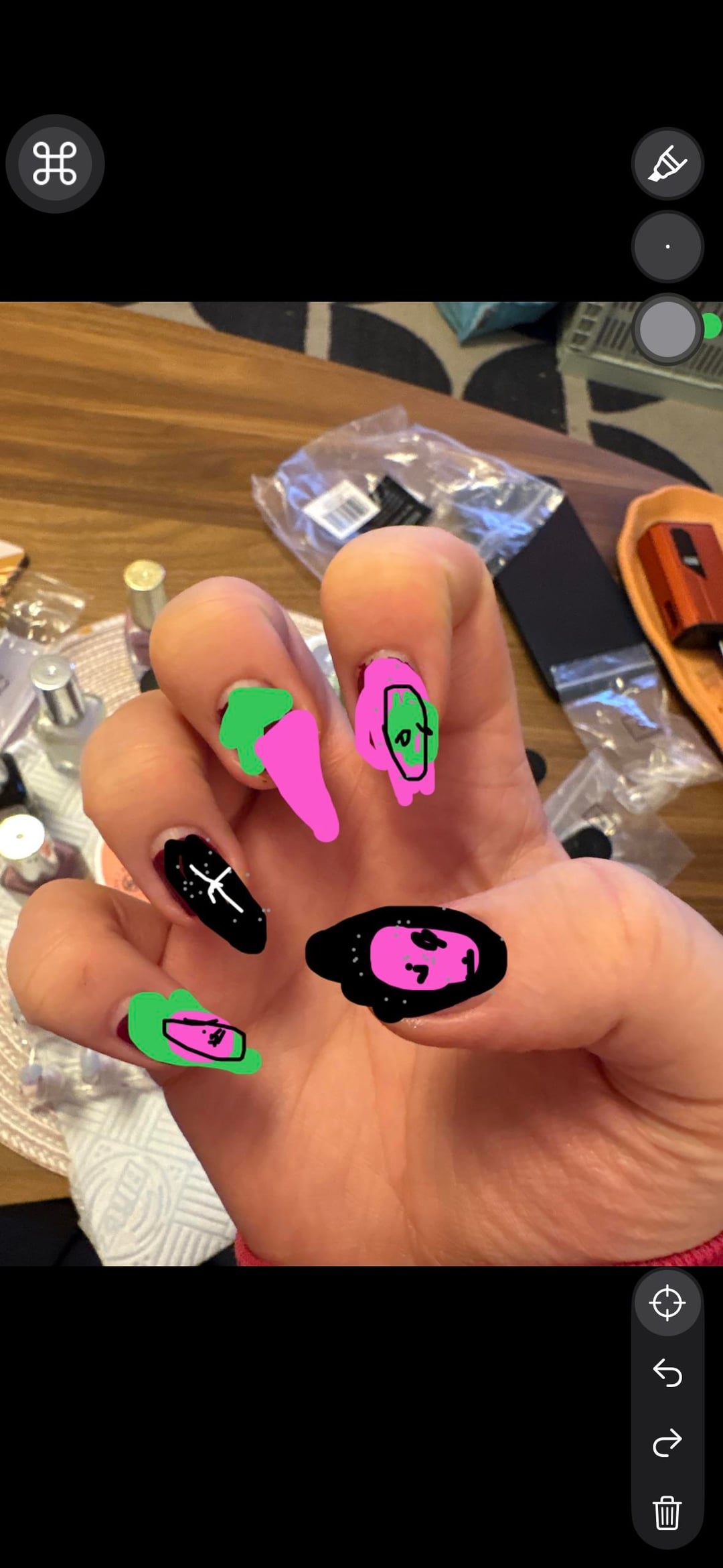 First DIY-painted press-on’s in a years of losing my motivation and creativity and just paying to get them done – was so so fun painting these even if they are superrrrr messy!