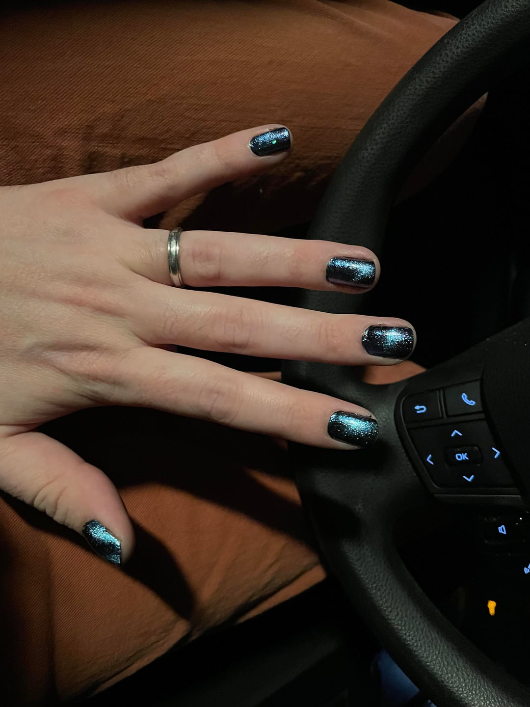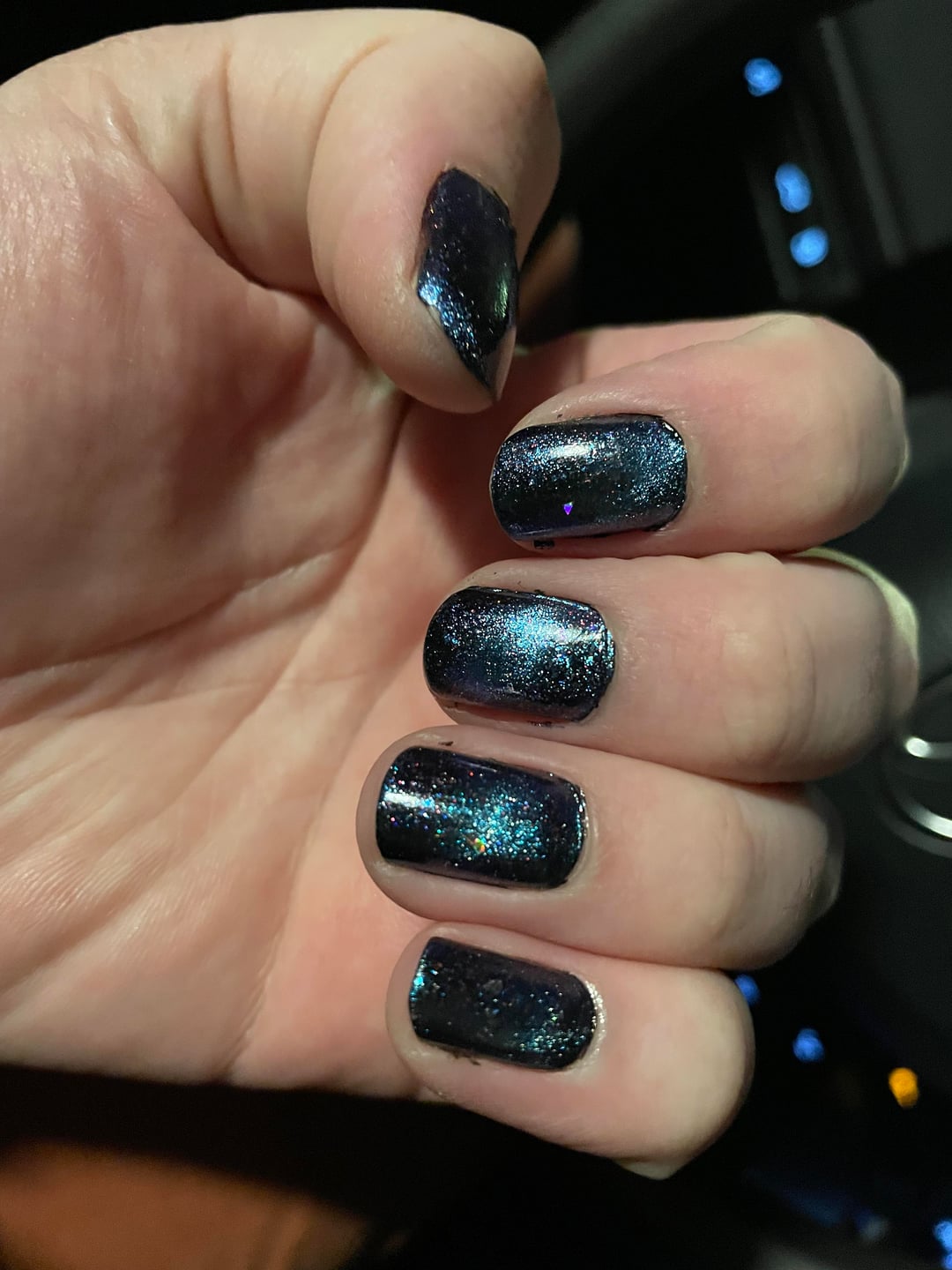 This is 2 coats of Essie Licorice and then 1 coat of Mooncat’s A Galaxy Far Far Away.