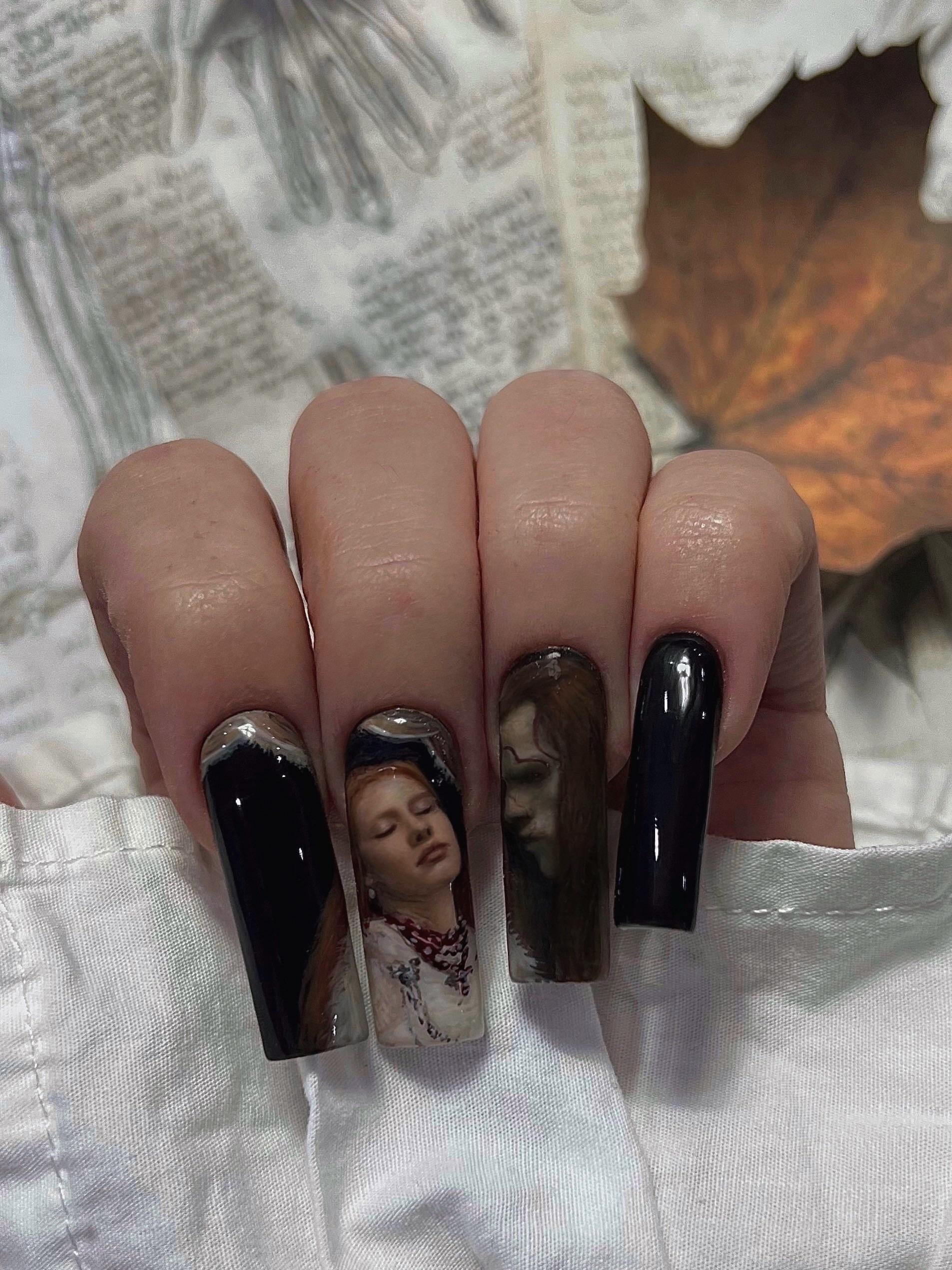 I hand painted Frankenstein on my nails ✨ (painted with gel polish)