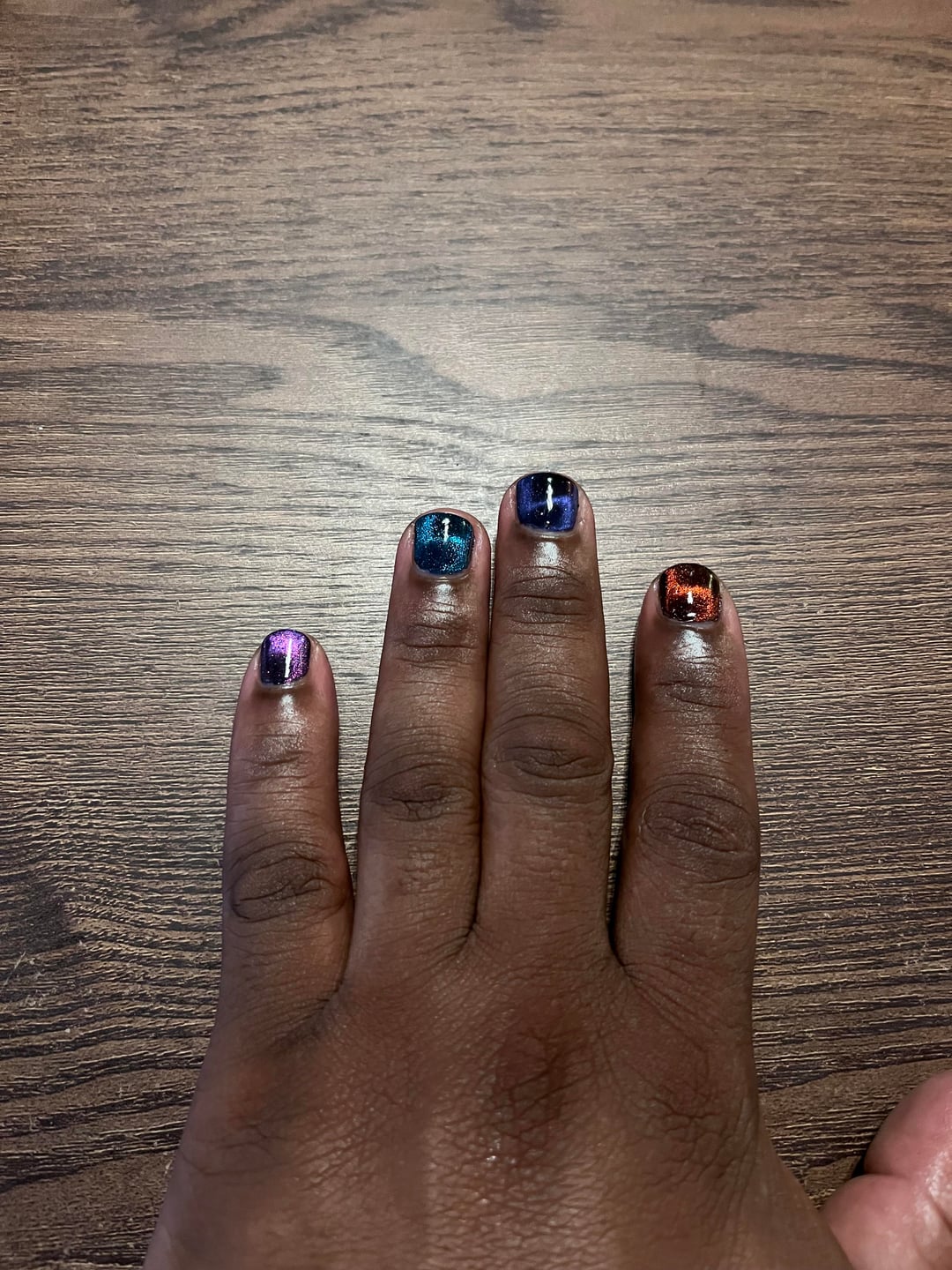 I’m absolutely loving this collection. Initially, I was a little underwhelmed with a regular cat eye magnetization (the pull just didn’t seem strong enough to really pop for my taste), but when I tried it in velvet, it totally clicked. That made me try the “bar magnet over horseshoe” setup (we really need a catchy nickname for this. Where’s PR when you need them?😂), and it was game over!