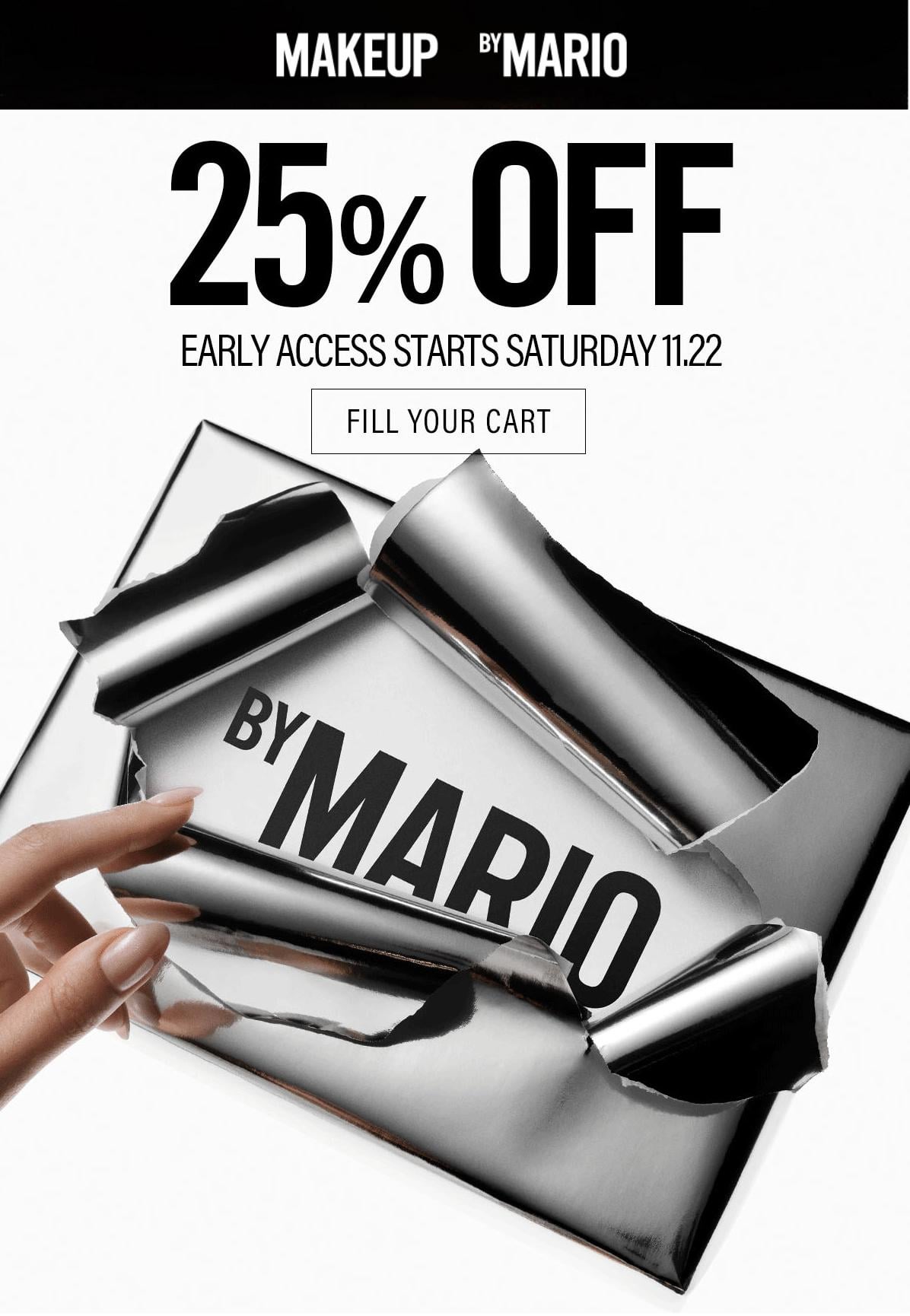 https://www.makeupbymario.com Must be a member/sign in for early access. 25% off sitewide. No exclusions noted in promo material but may still apply. by Sea_Friendship_452