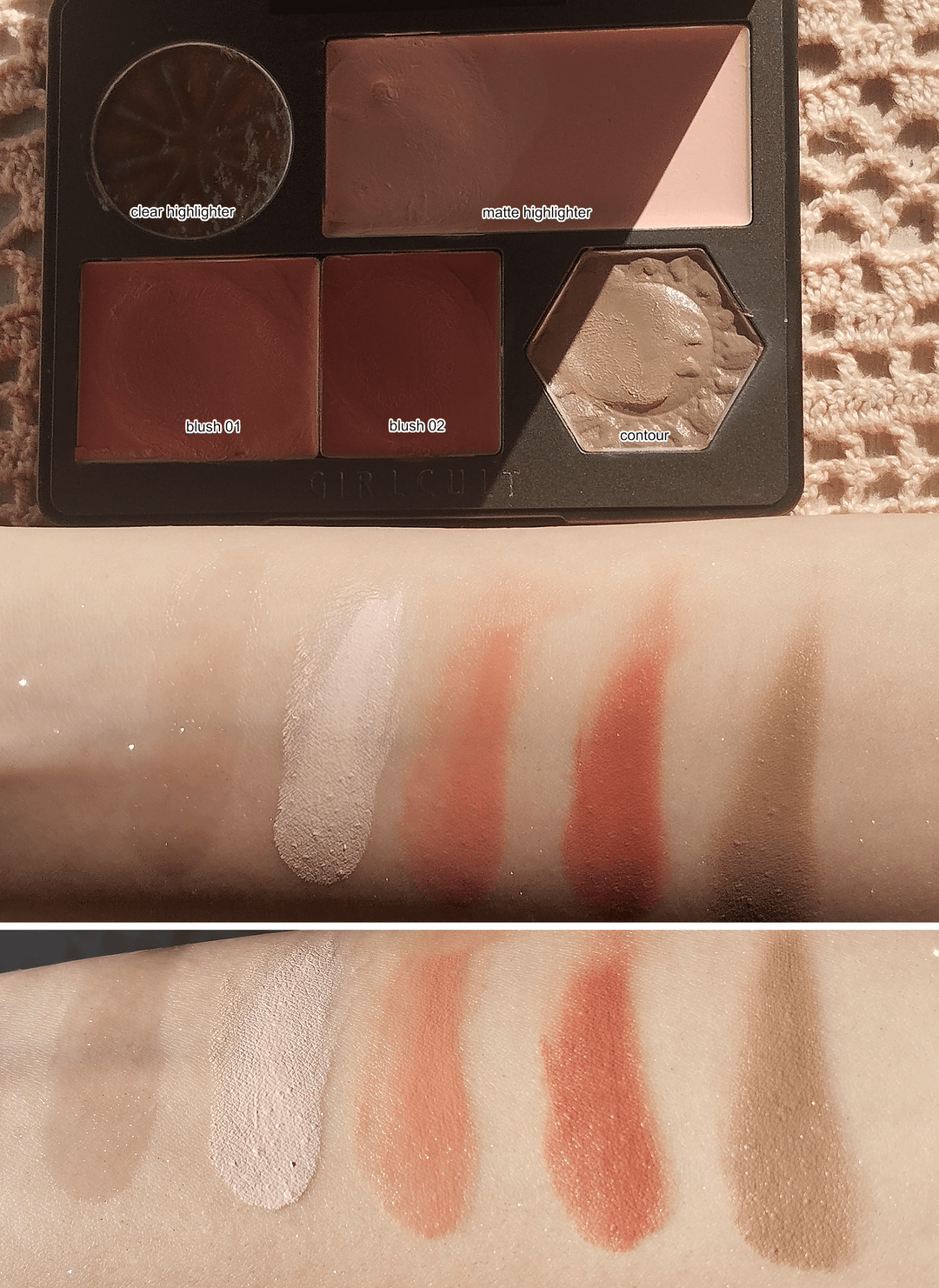 - girlcult's face palette isn't super moisturizing when it's cold here because the creams feel cream-to-powder, even though it is marketed towards dry skin, so I'd be careful purchasing this one if I had dry skin, I think. for reference, the coldest it gets where I live is 10C, plus humidity is high all year round because it's near the beach, and I have combination skin