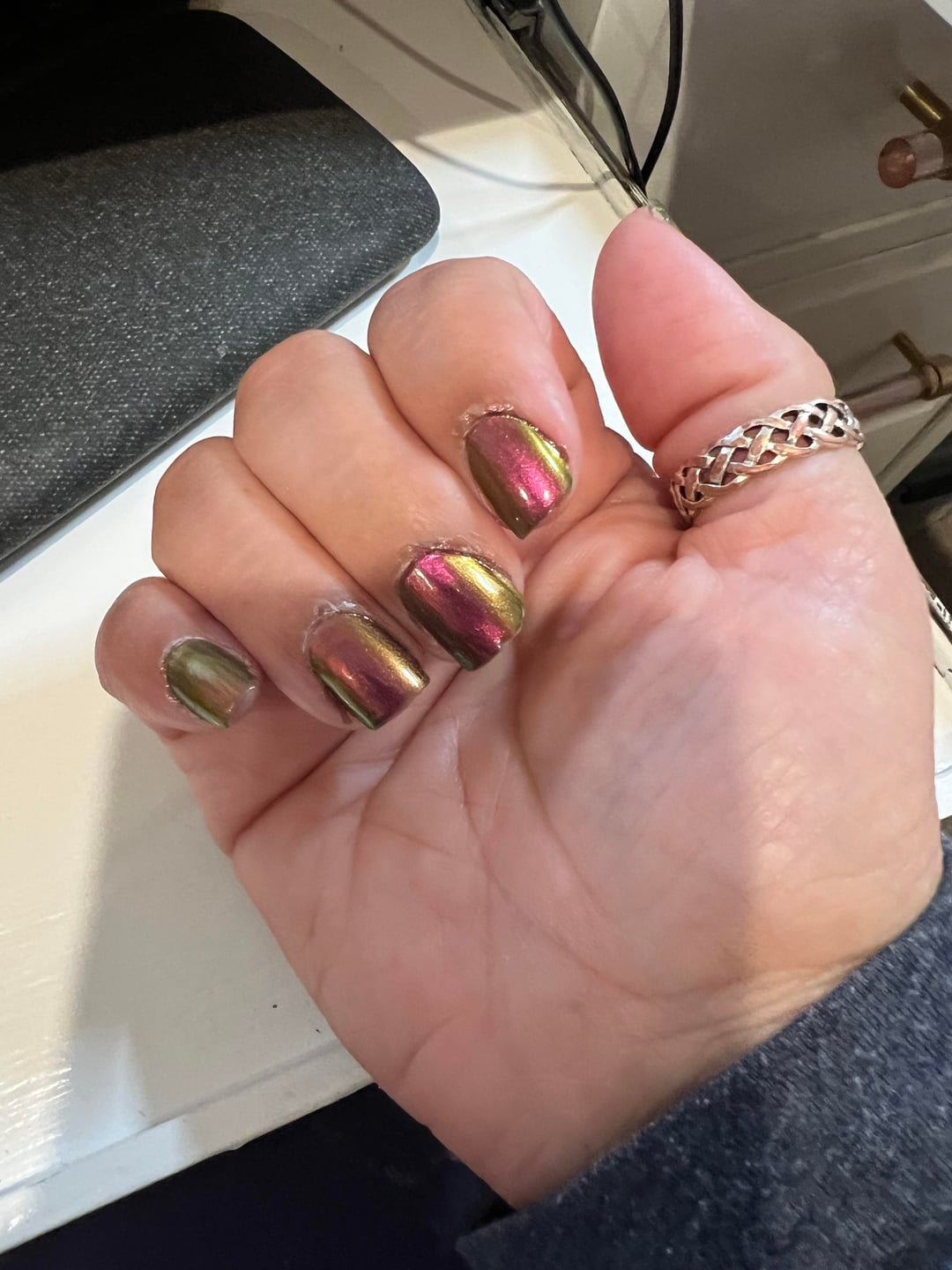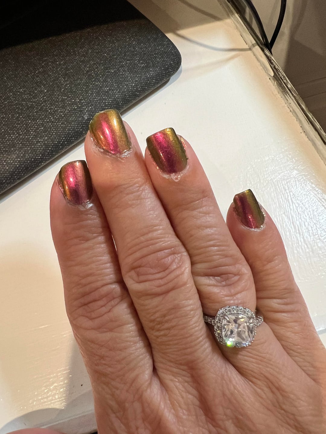 I’m getting 4 colors off this one and it has me hypnotized. Yellow, copper, pink and green depending on how the light hits it